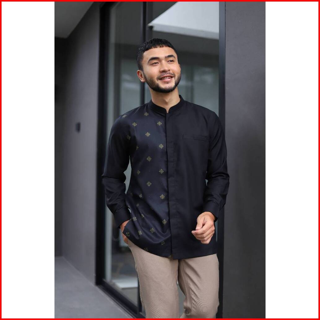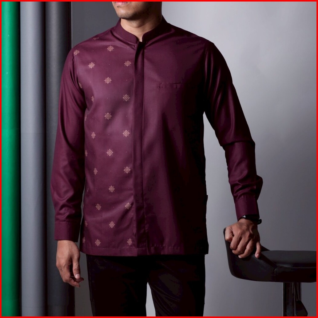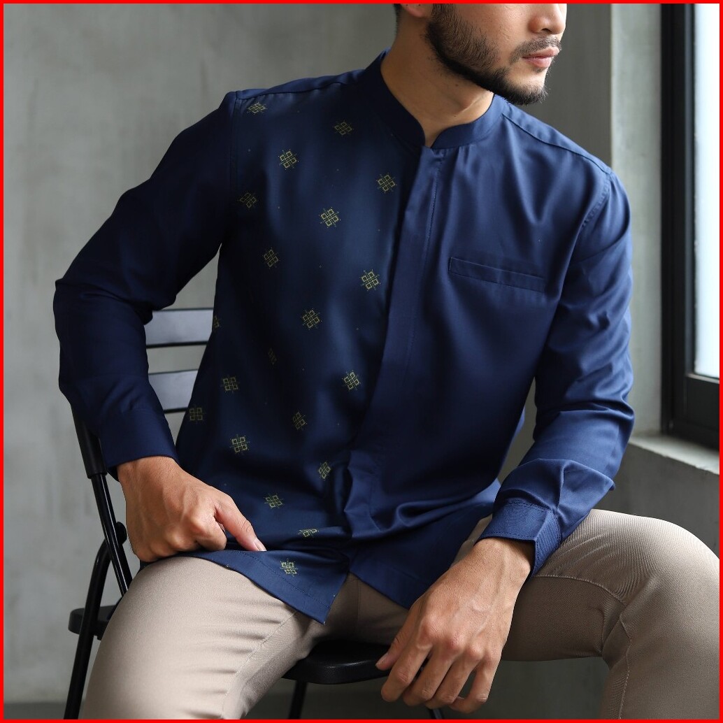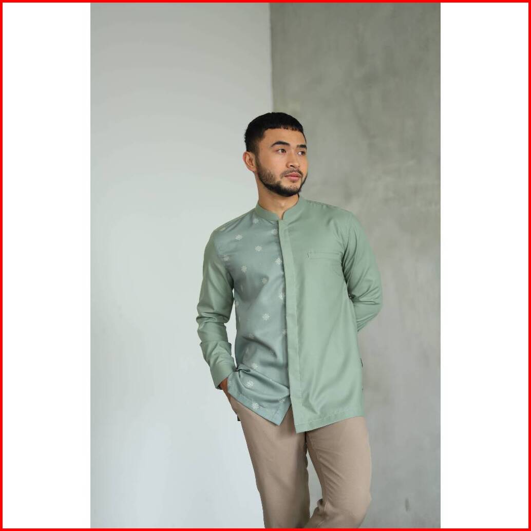 Kemeja Koko Baju Kurta Muslim Pria Lengan Panjang Bahan Adem Motif Floral Untuk Acara Dan Ibadah