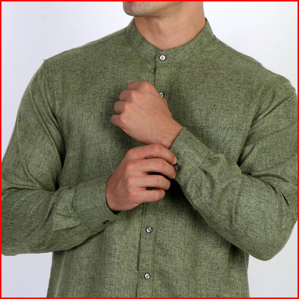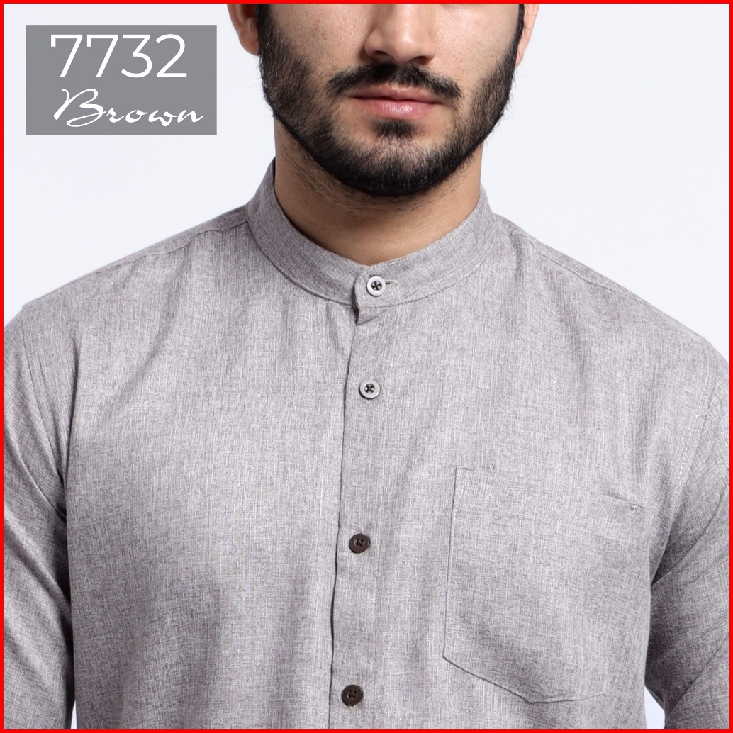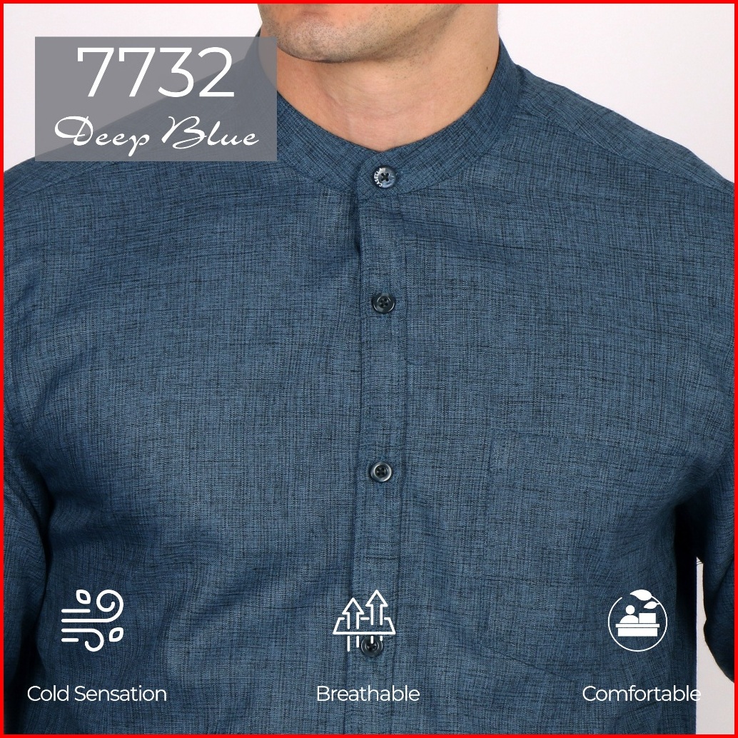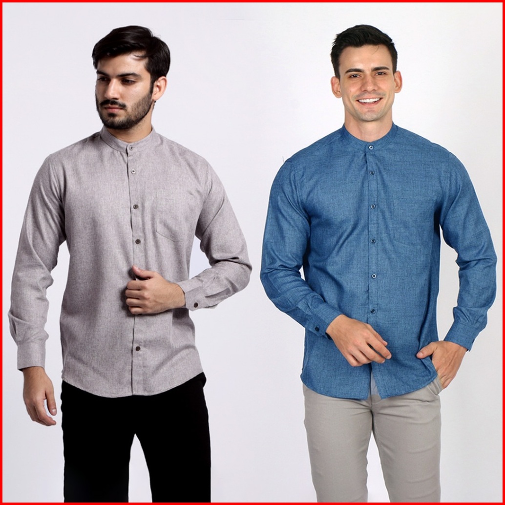 Casella Kemeja Pria Lengan Panjang Kerah Shanghai Polos Kemeja Koko Two Tone