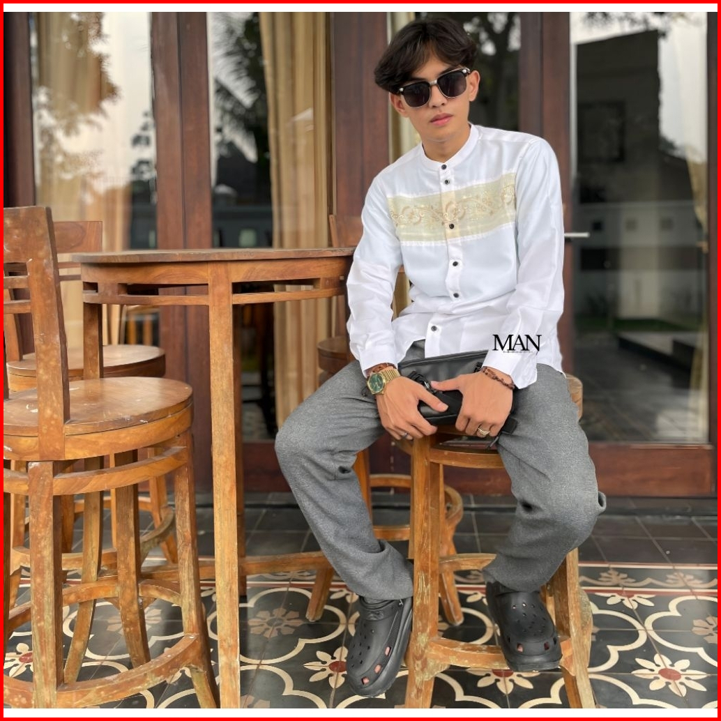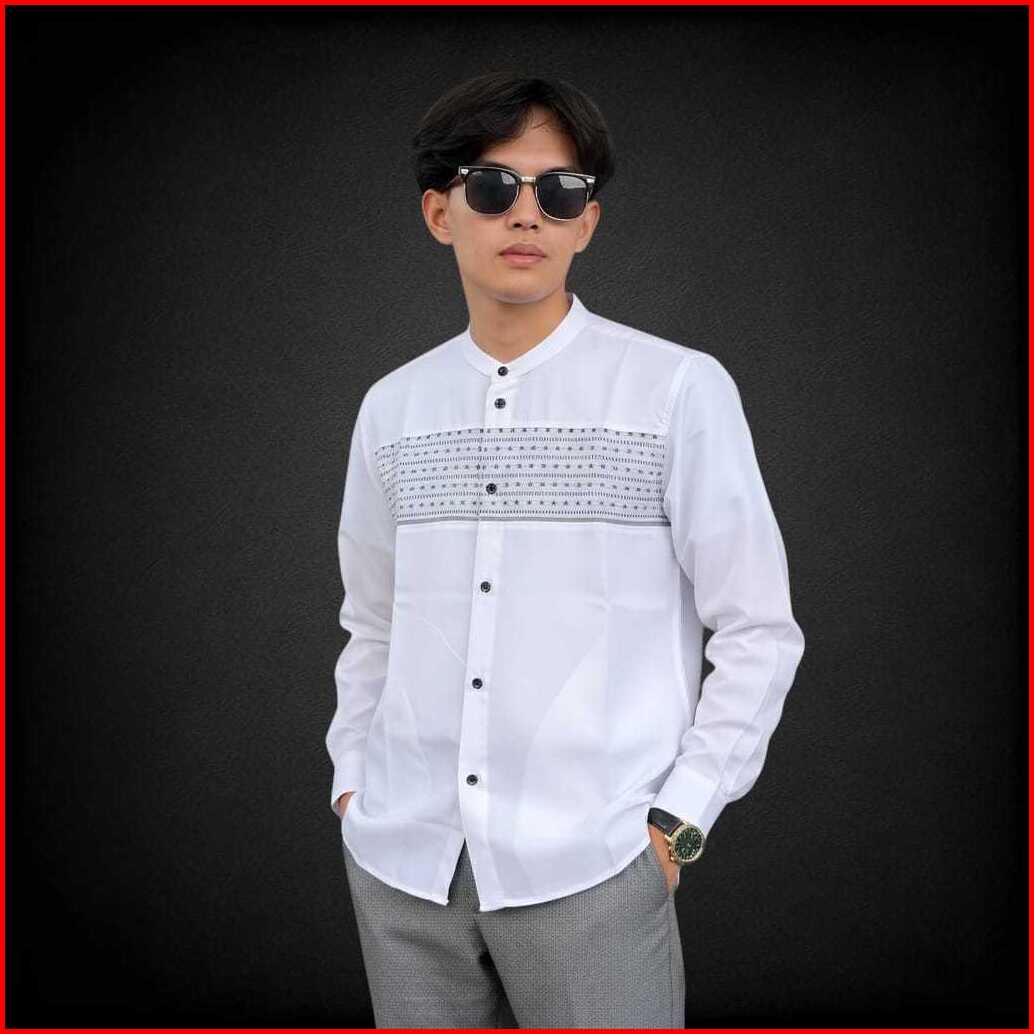 Baju Koko Pria Putih Polos Slimfit - Baju Muslim Dewasa Lengan Panjang
