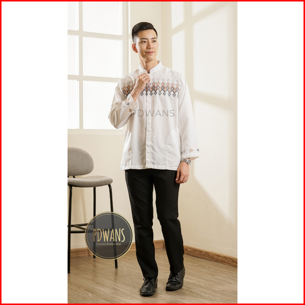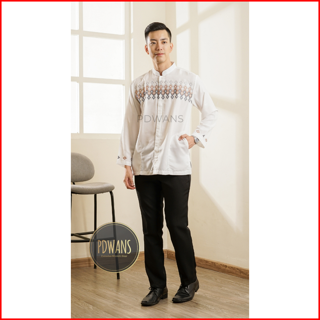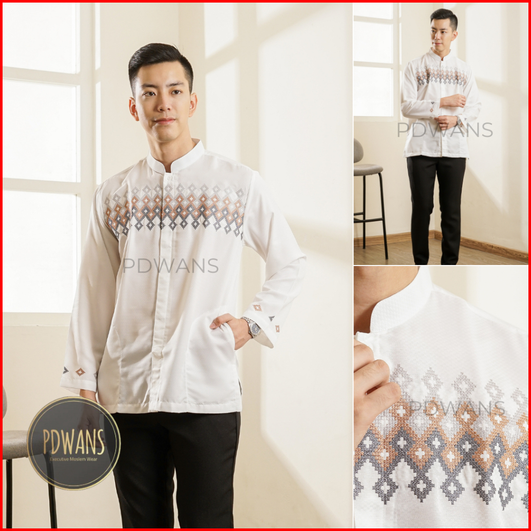 Baju Koko Poli Katun Lengan Panjang Putih Tulang Bordir Ukuran M L Xl Pdwans - Bmtpjg49