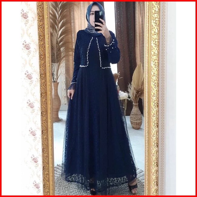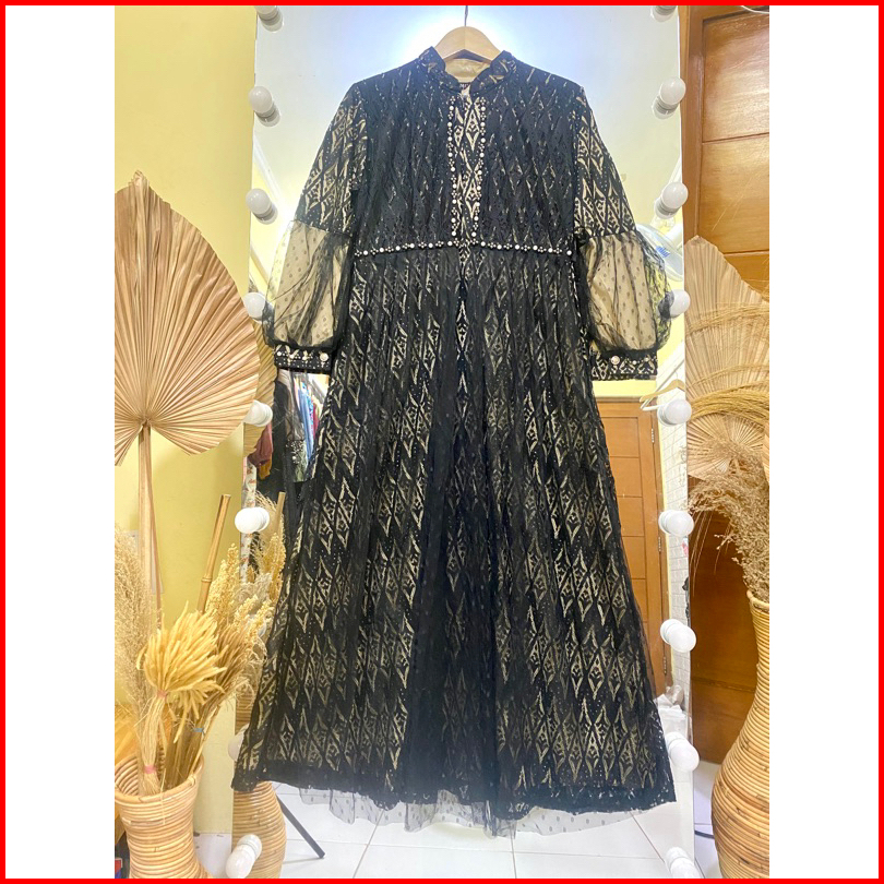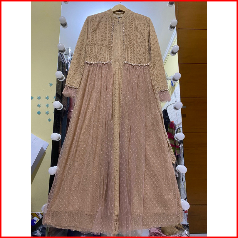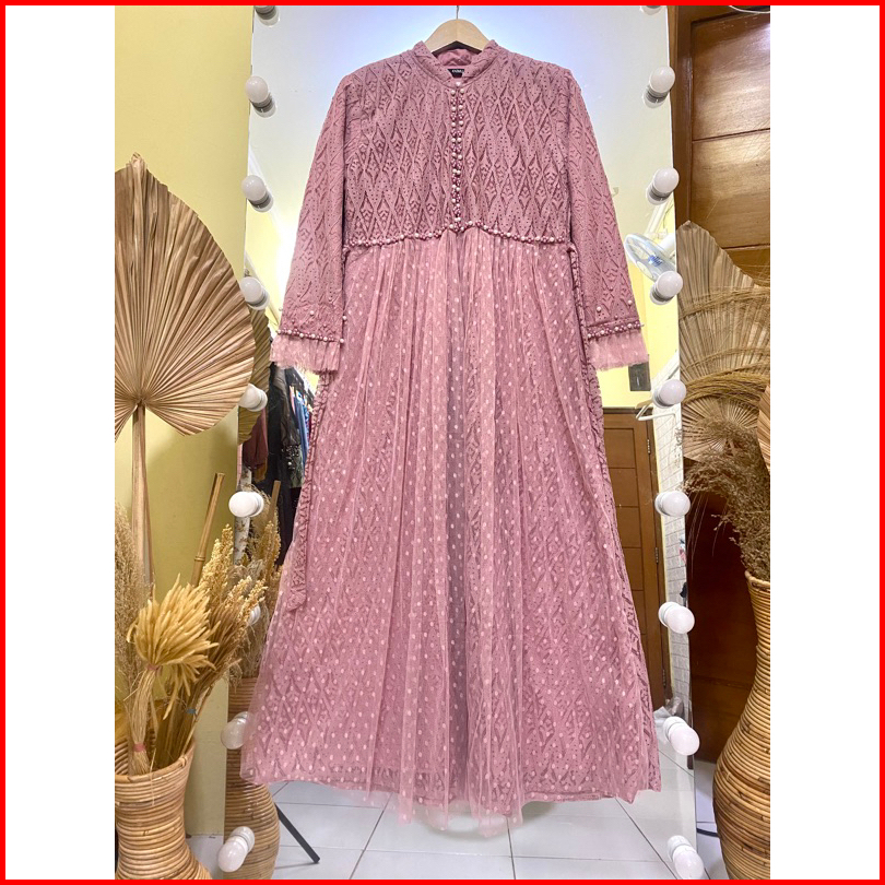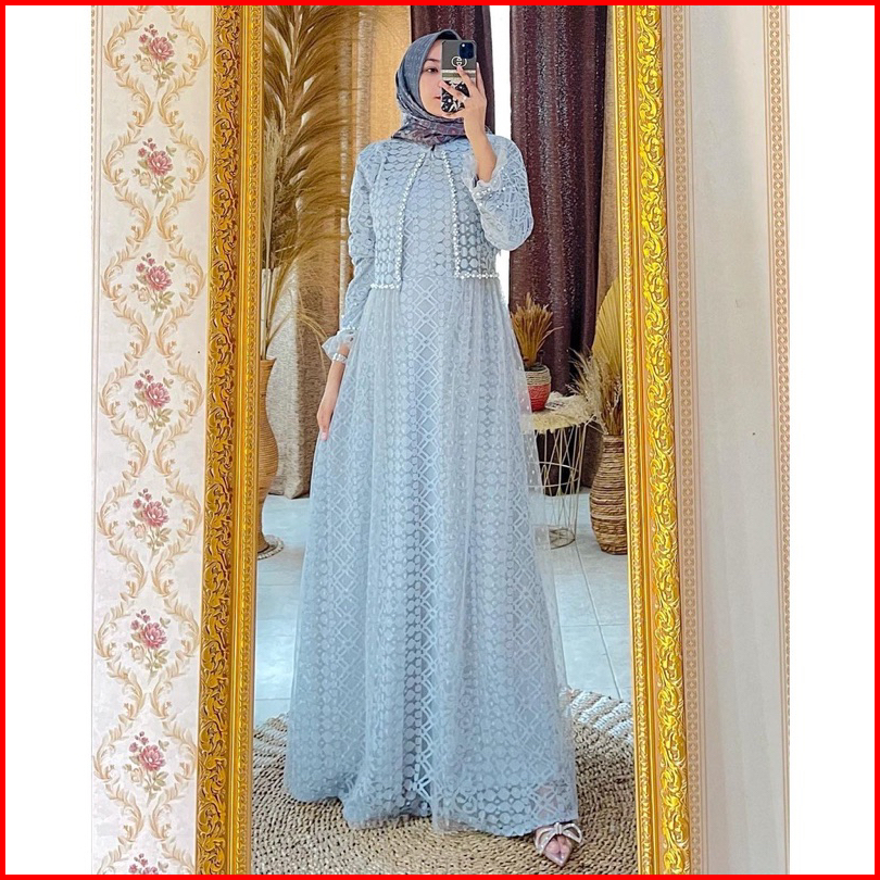 Gamis Ozias Aurel Motif Bunga Busui Dress Maxi Brokat Import Premium Dress Bridesmaid Mewah Lebaran