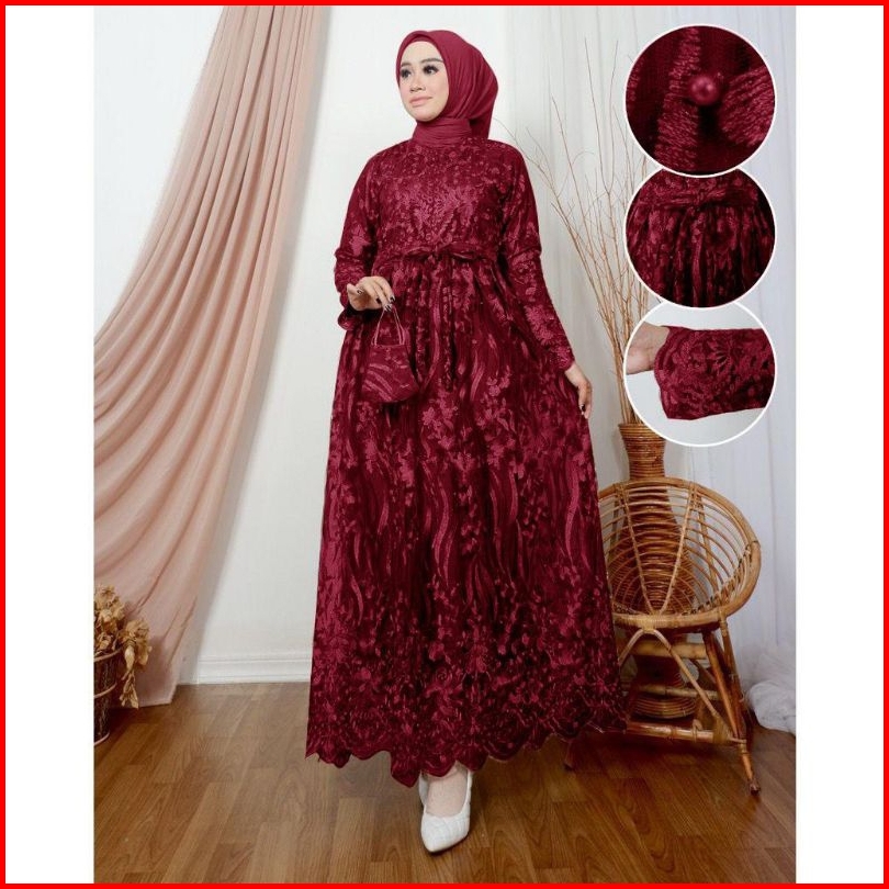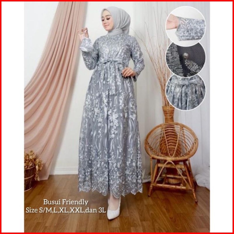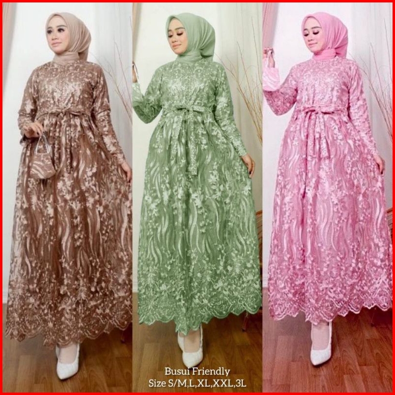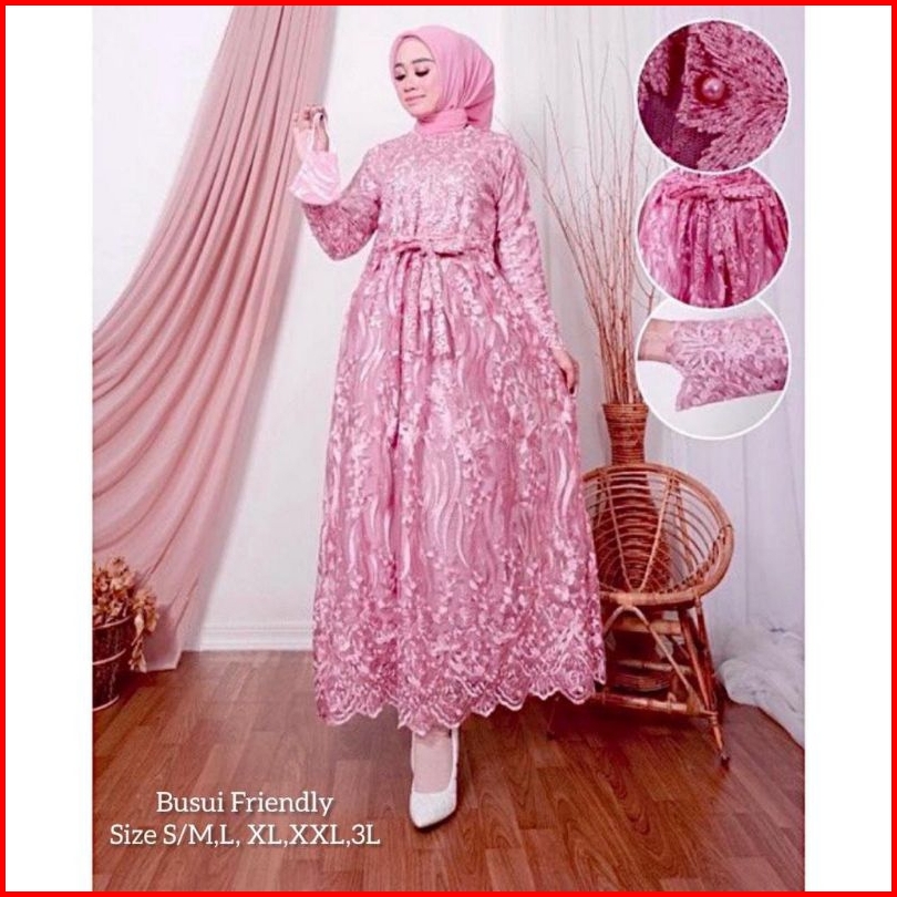 Maxi Lesya M-xxxl Dress Muslim Gamis Busui Sleting Depan Gamis Brukat Gamis Jumbo Gamis Pesta Gamis Kondangan Dress Musl