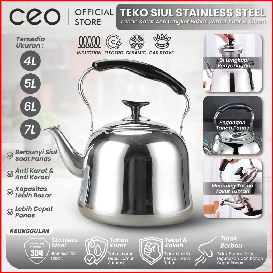 Ceo Teko Masak Air Berbunyi Siul Stainless Steel 304 Ceret Pemanas Anti Karat Whistling Kettle