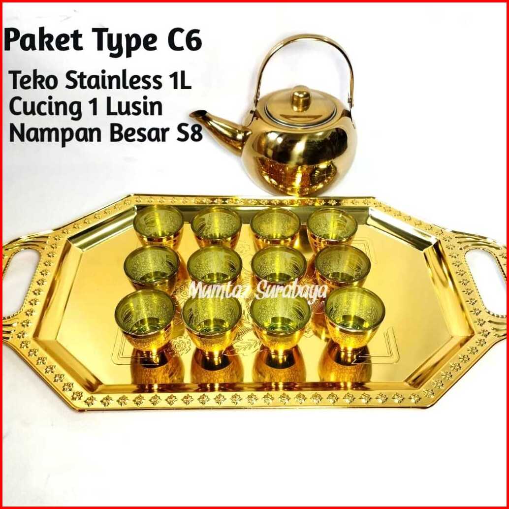 Paket Teko Stainless Cucing Nampan Paket Teko Nampan Gelas Air Zam Zam Souvenir Oleh Oleh Haji Umrah Umroh Gelas Zamzam