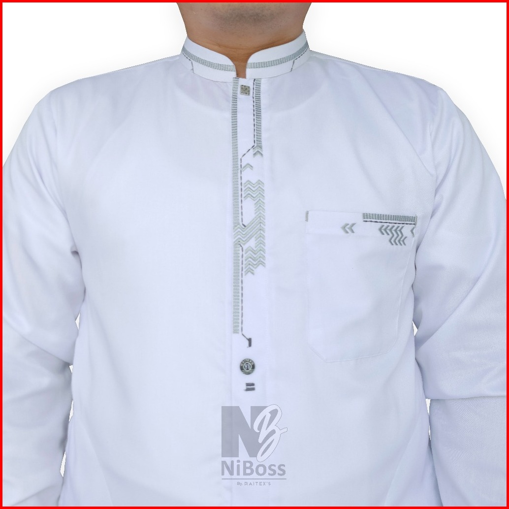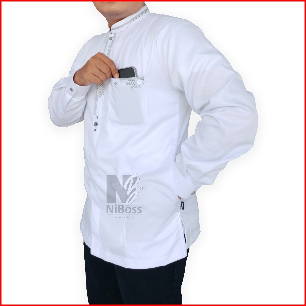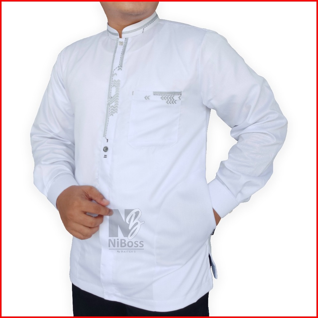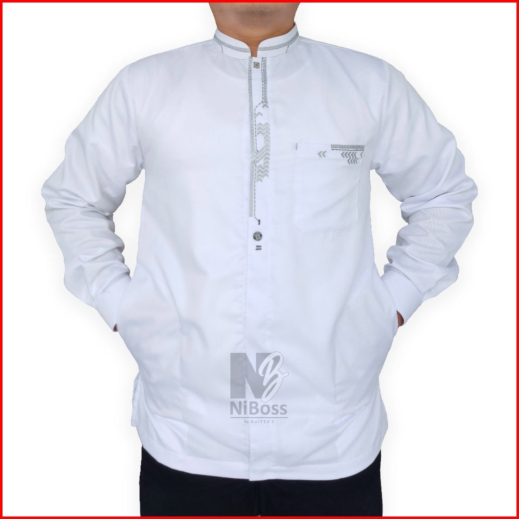 Baju Koko Putih Pria Lengan Panjang Kemko Dewasa Taqwa Motif Bordir Bahan Toyobo Premium Muslim
