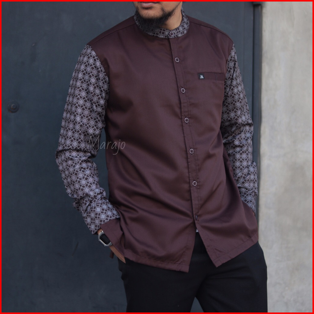 Kemeja Koko Kurta Pria Lengan Panjang Motif Batik Bahan Toyobo Premium Original Marajo