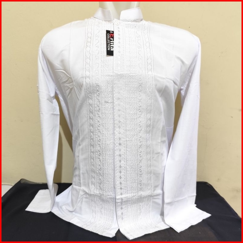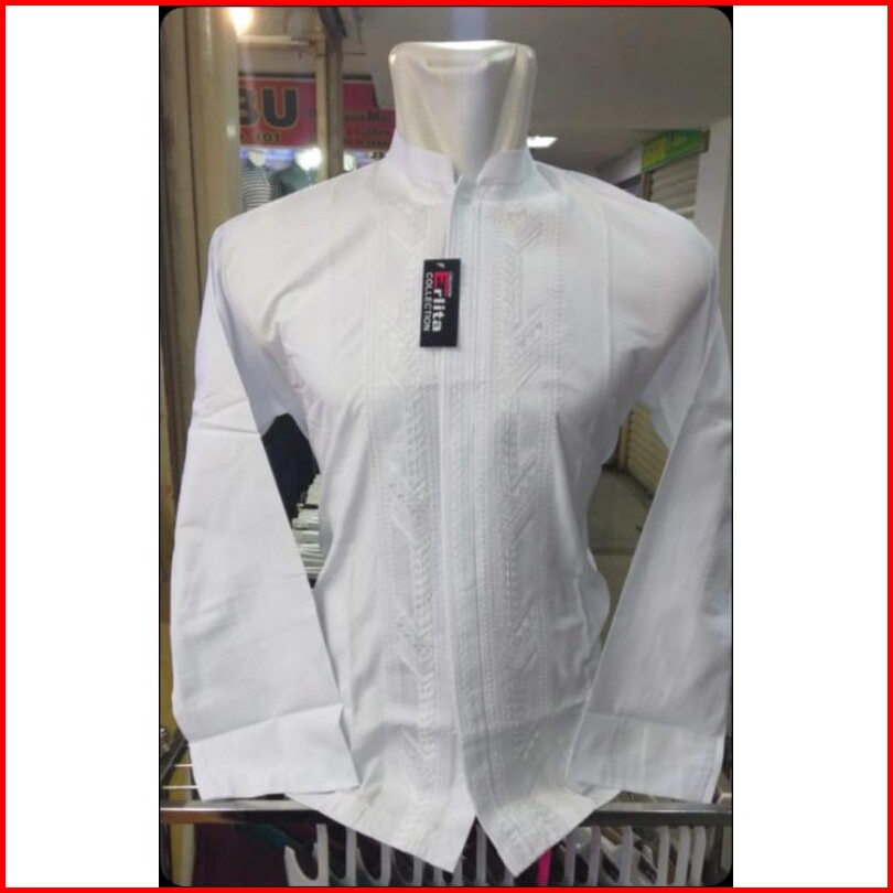 Baju Koko Putih Lengan Panjang Erlita Muslim Pria Dewasa Bahan Full Katun Original Koko Murah