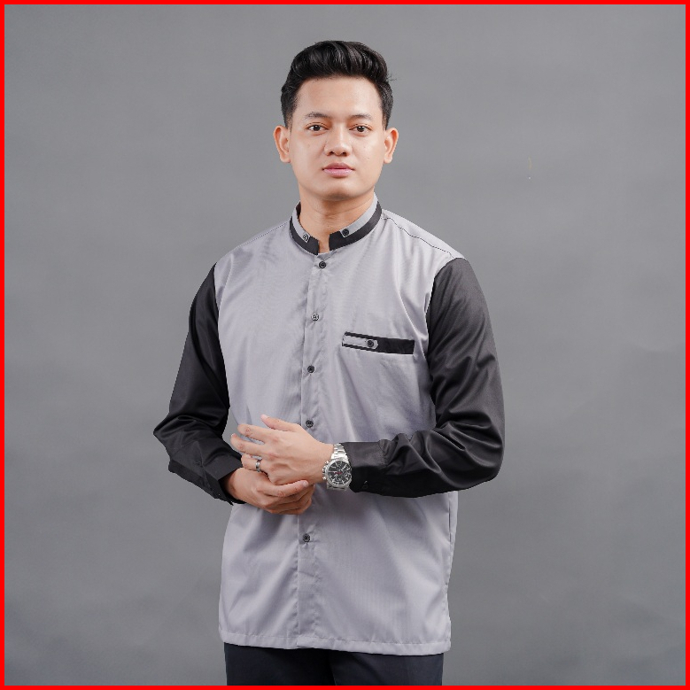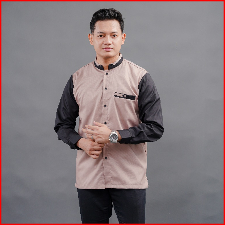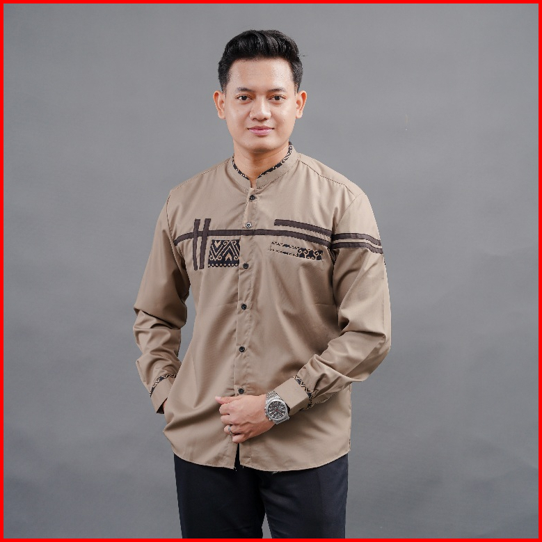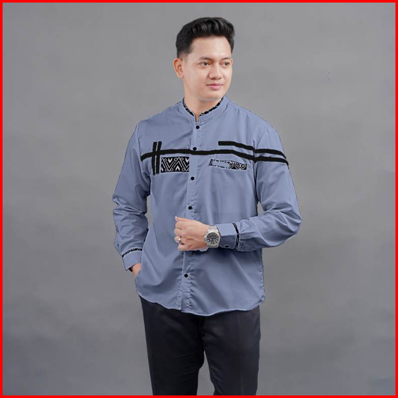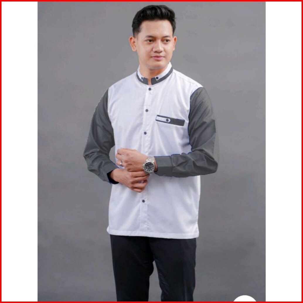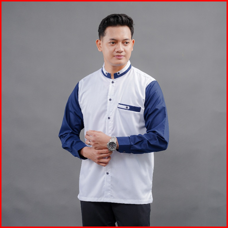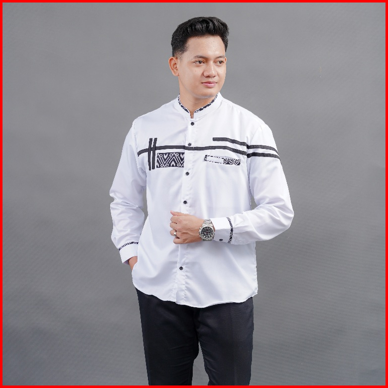 Baju Koko Muslim Lengan Panjang Kombinasi Batik Original Ar Ribhan Bahan Katun Pakaian Pria Dewasa Baju Kemeja Koko Puti