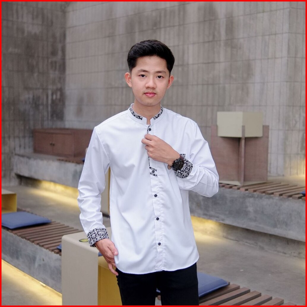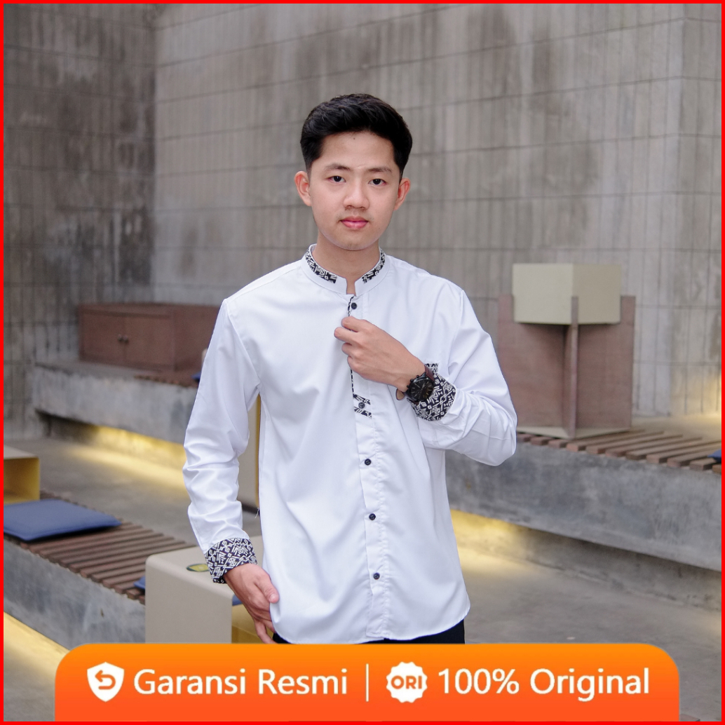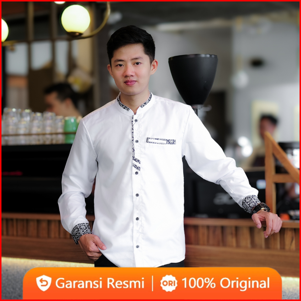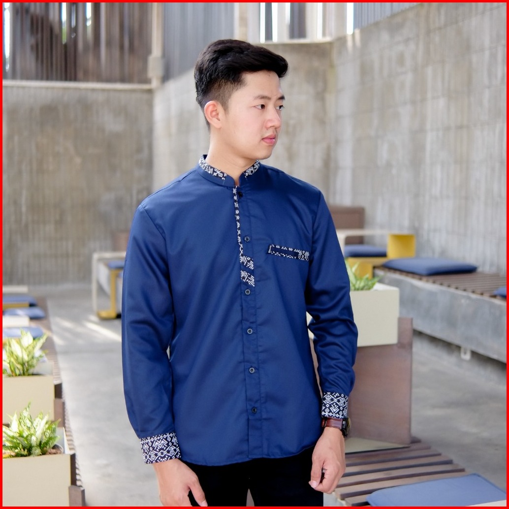 Baju Koko Pria Lengan Panjang El Rumi Terbaru Motif Berkombinasi Batik