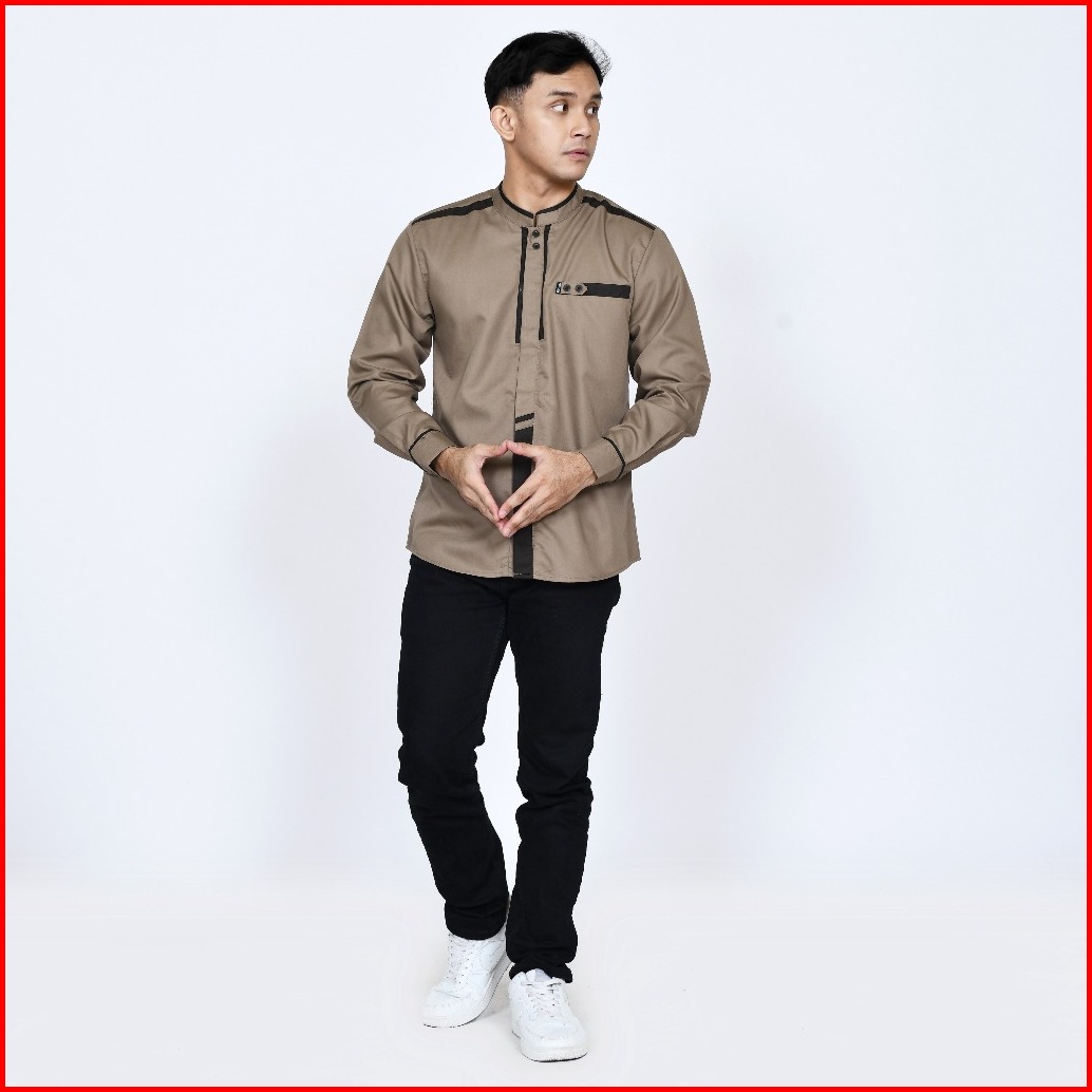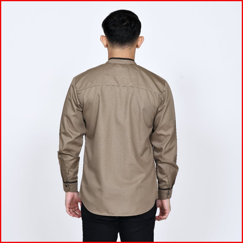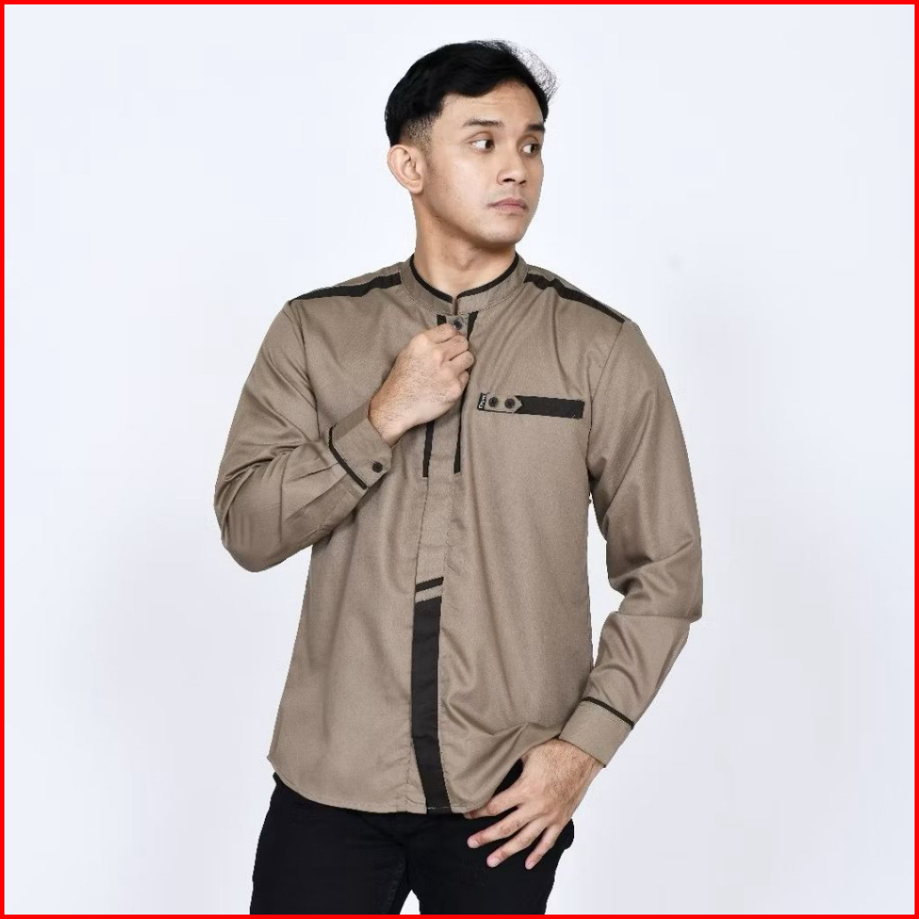 Baju Koko Pria Dewasa Lengan Panjang Warna Coklat Motif Katulistiwa Elrumi Katun