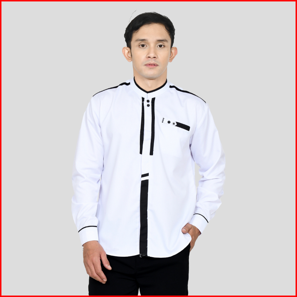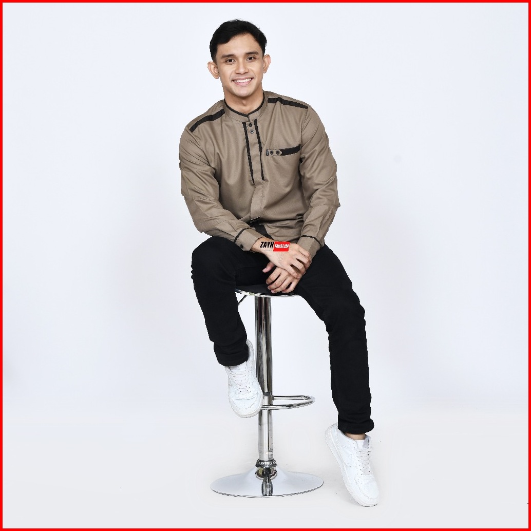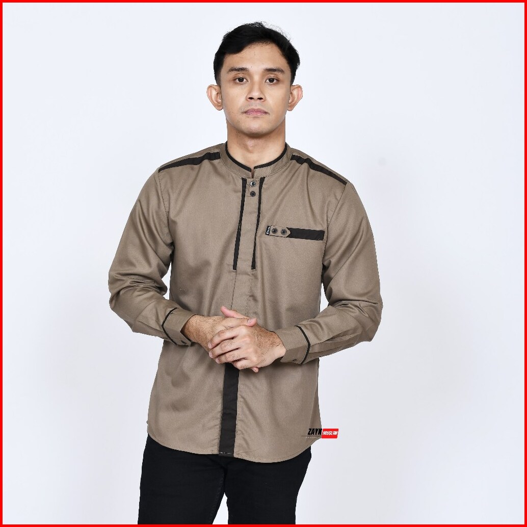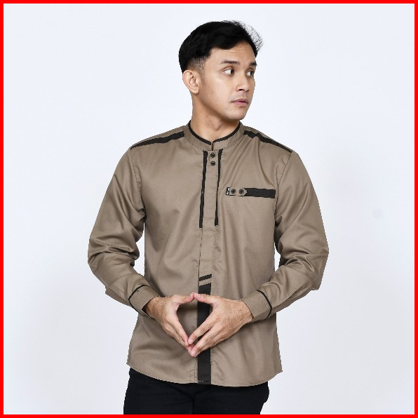 Baju Koko Pria Dewasa Lengan Panjang Warna Coklat Motif Katulistiwa Elrumi Katun