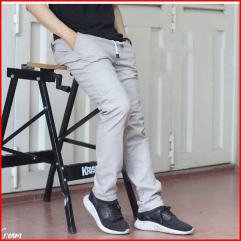 Celana Pria Slimfit Panjang Chino Kerja Harian Hitam Mocca Abu