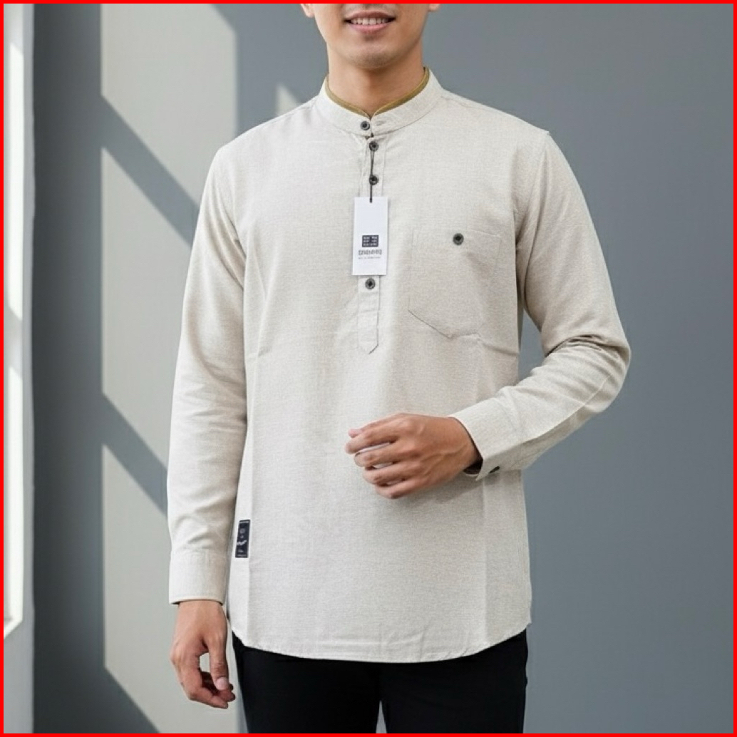 Kemko Kemeja Koko Pria Lengan Panjang Bahan Katun