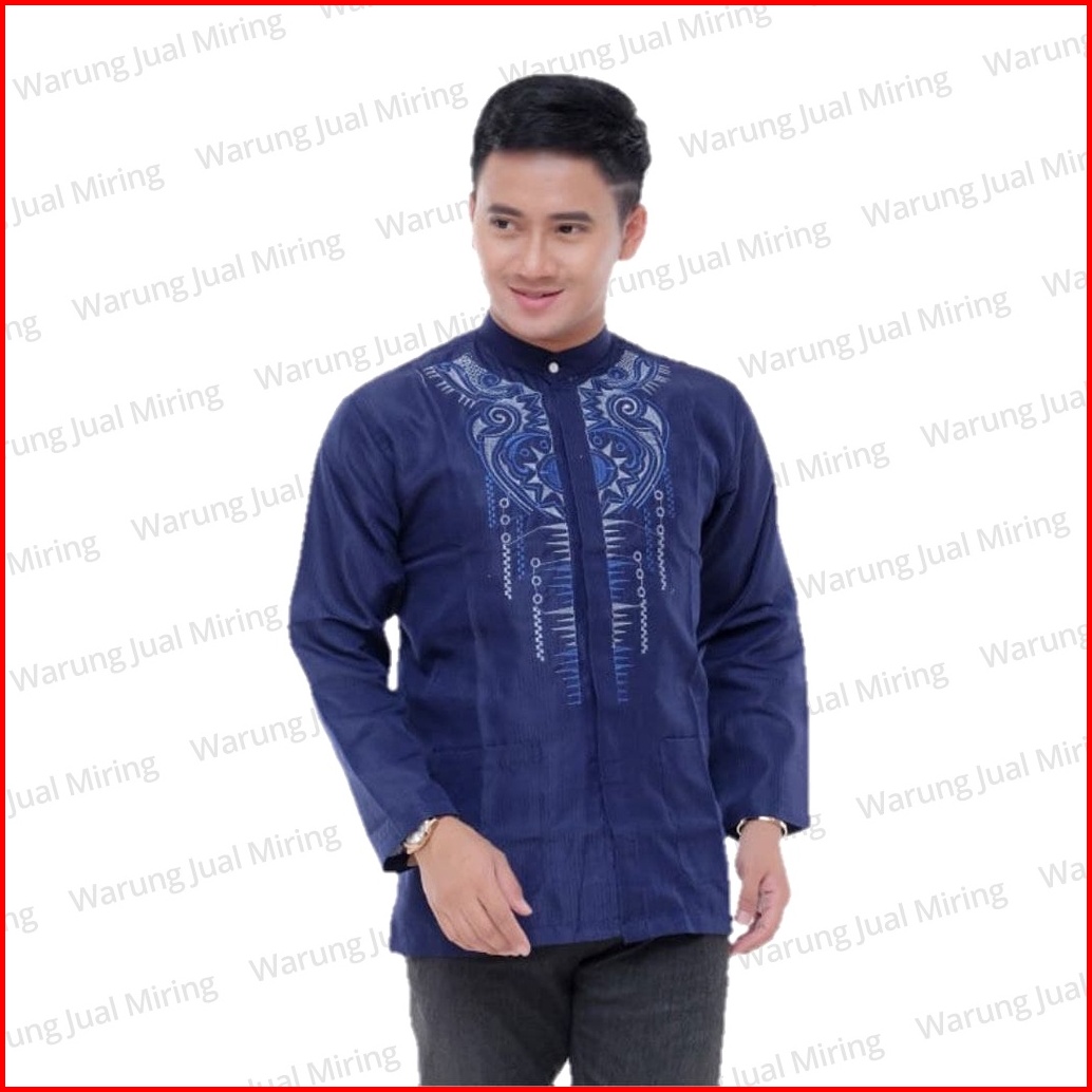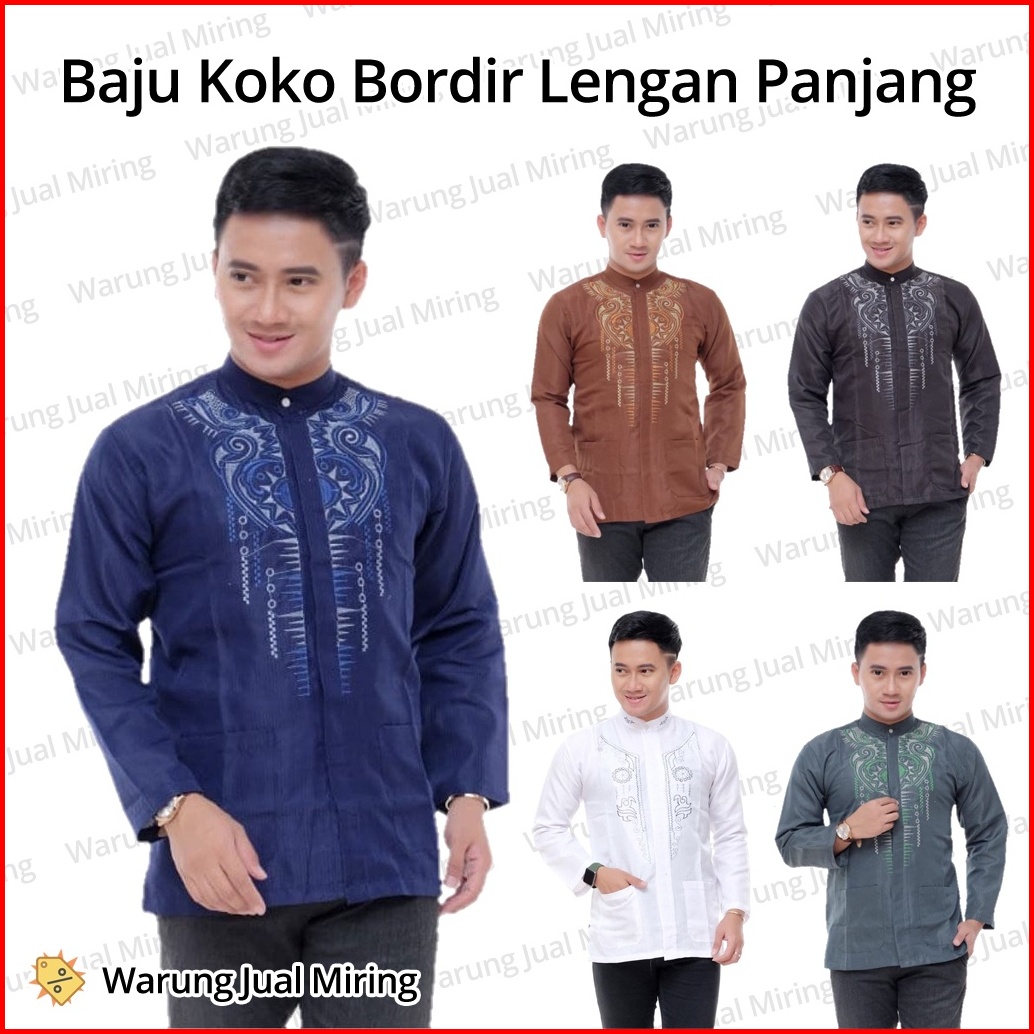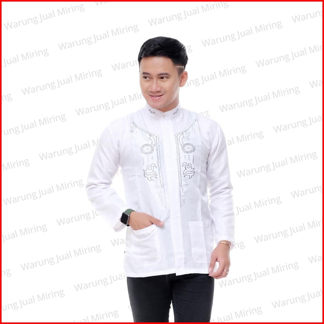 Baju Koko Lengan Panjang Bordir Klasik Kemeja Kantong Polos Dobby Kokoh Tangan Adem Dewasa Pria Laki Busana Atasan Musli