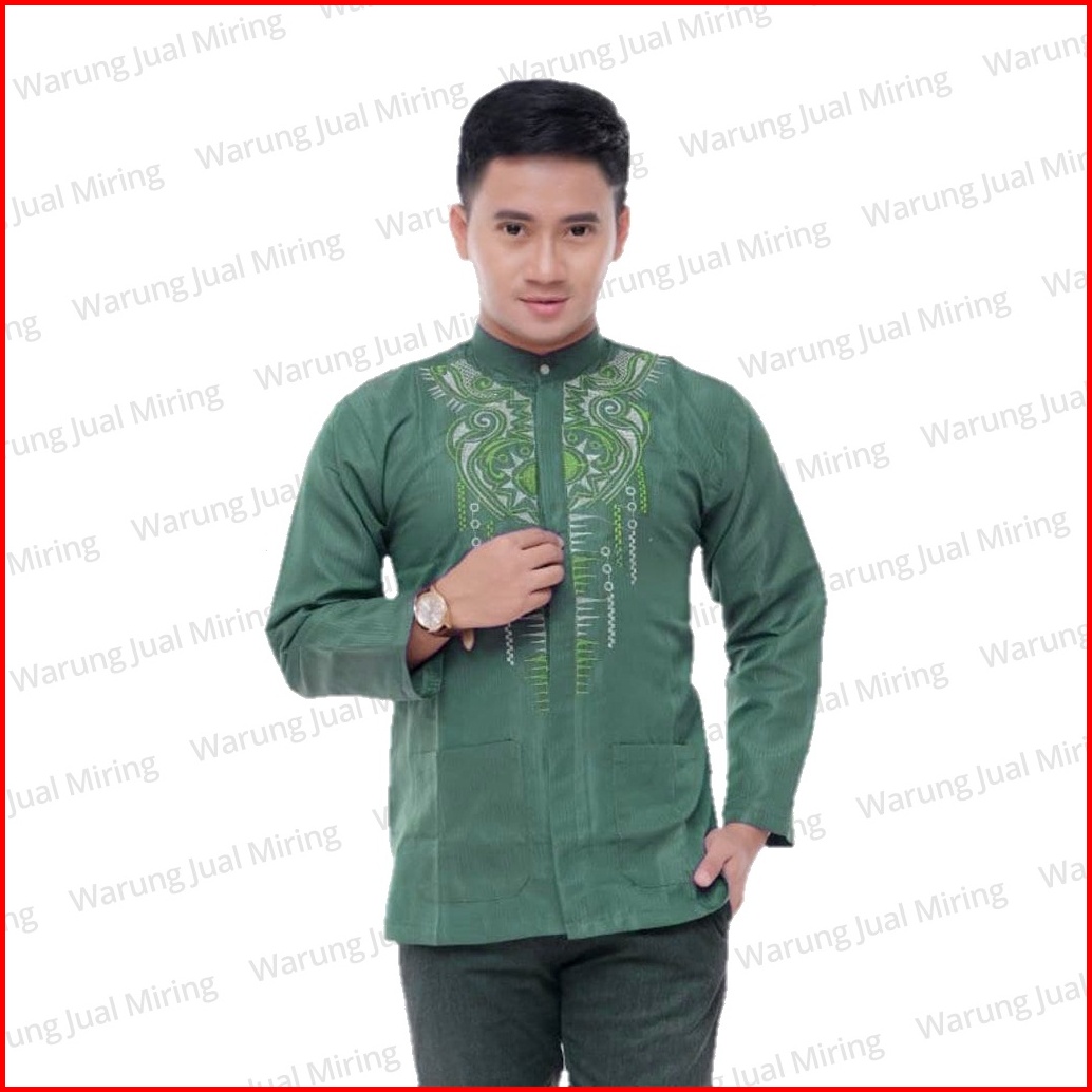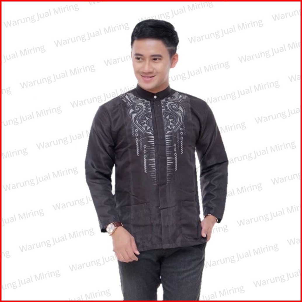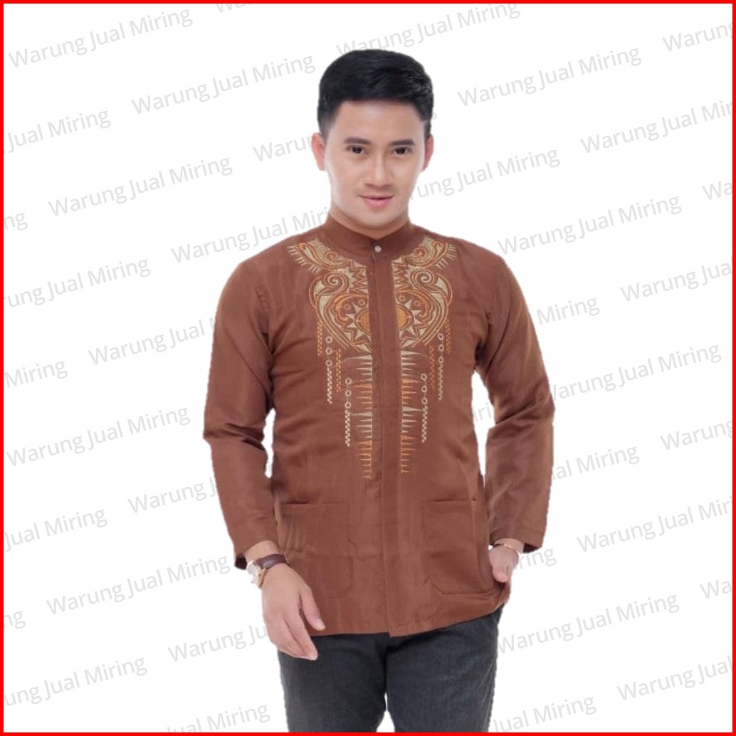 Baju Koko Lengan Panjang Bordir Klasik Kemeja Kantong Polos Dobby Kokoh Tangan Adem Dewasa Pria Laki Busana Atasan Musli