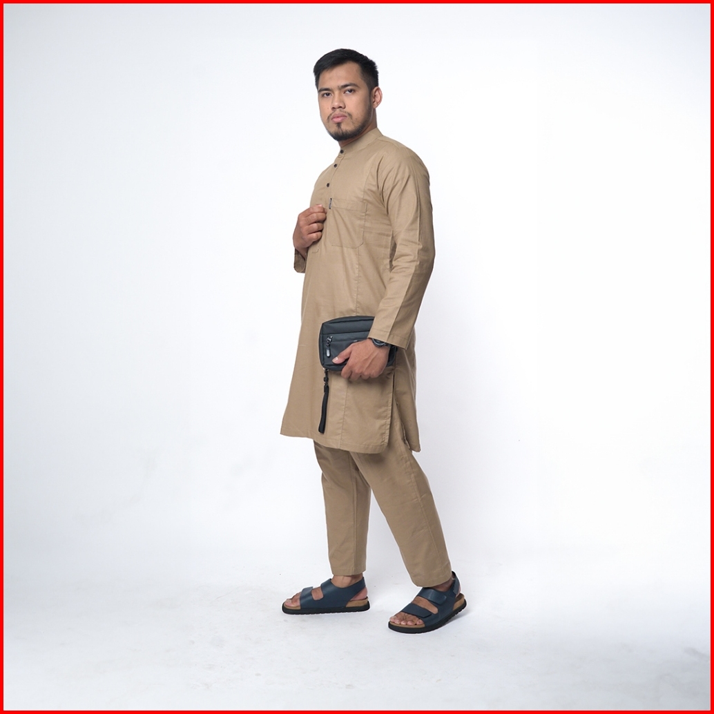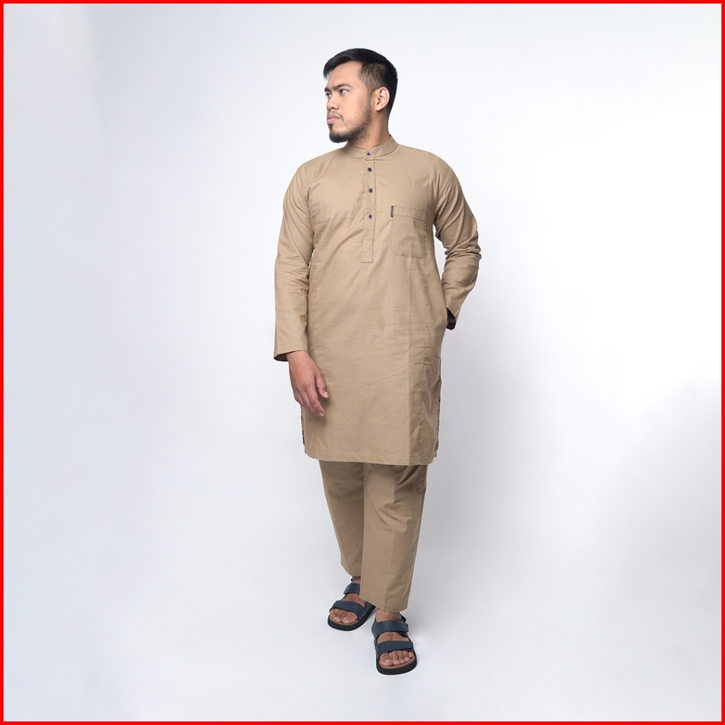 Khoirummah Koko Kurta Set Khaidar Polos Koko Setelan Polos Lengan Panjang - Cream