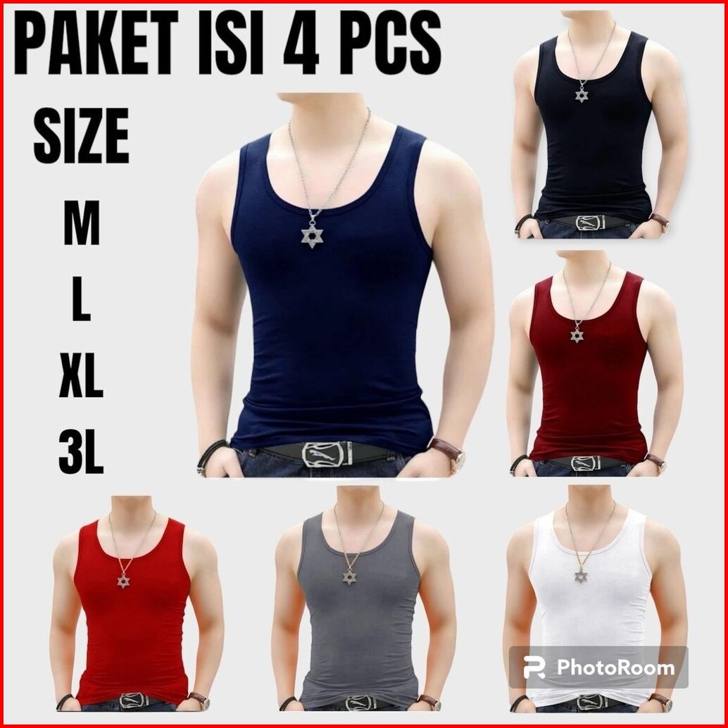 Paket 4 Pcs Kaos Singlet Pria Warna-warni Katun Lembut