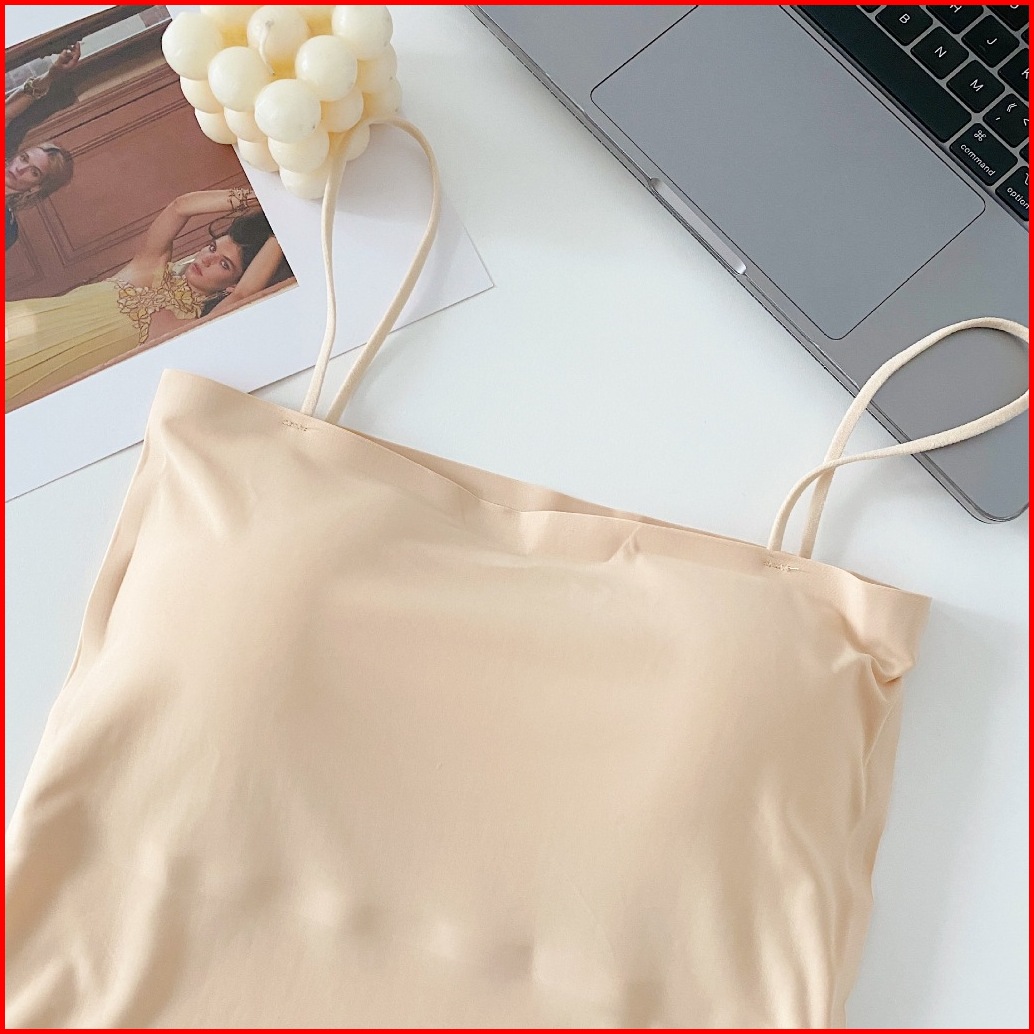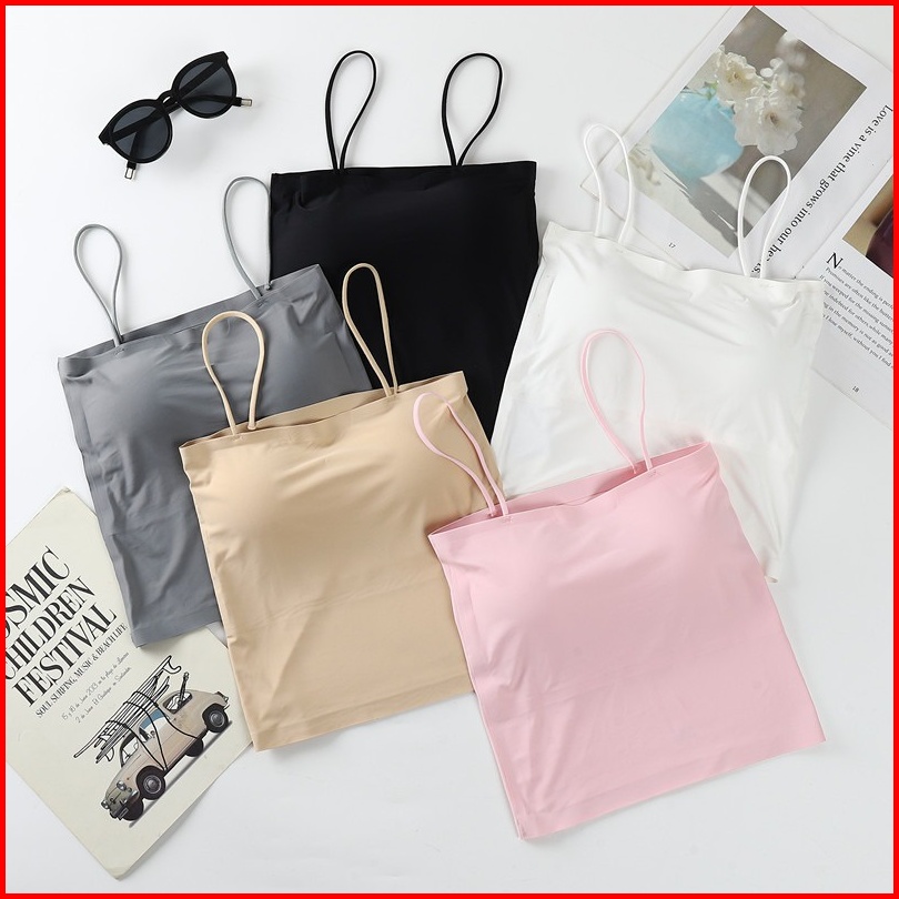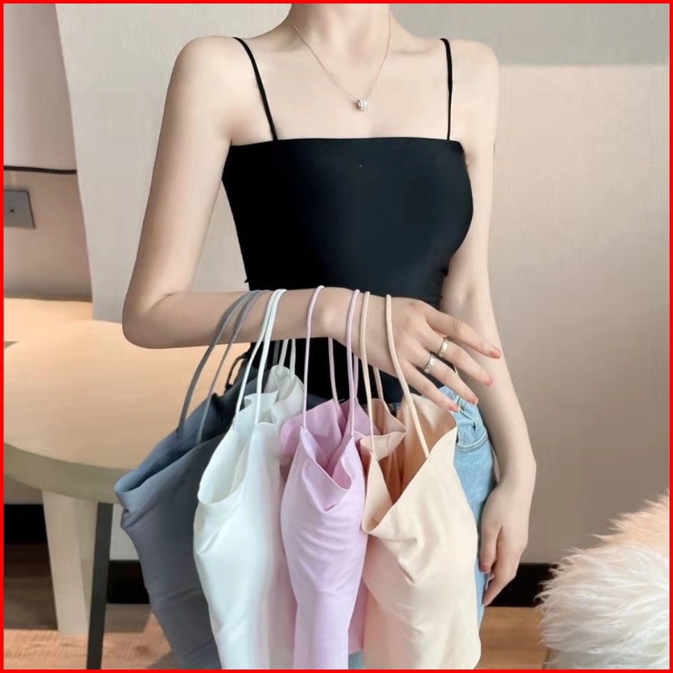 Ninabobo Br103 Tanktop Bra Wanita Crop Top Tali Spagetti Model Seamless Bahan Ice Silk Fashion