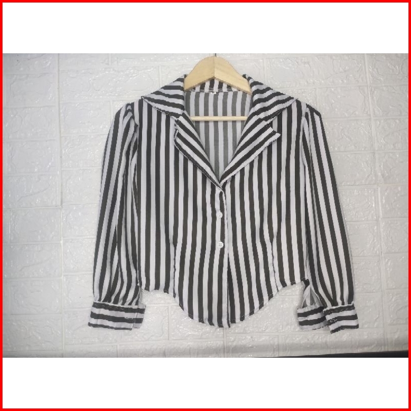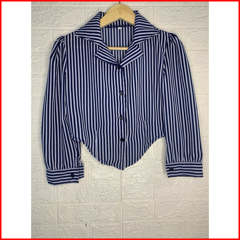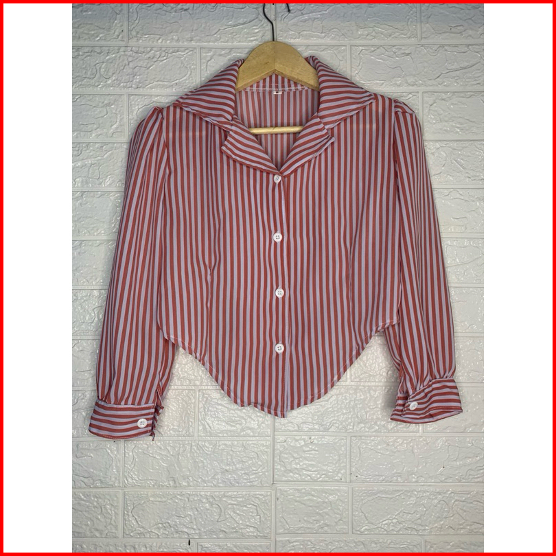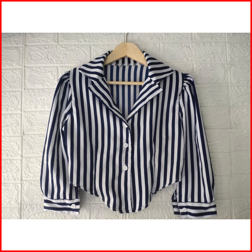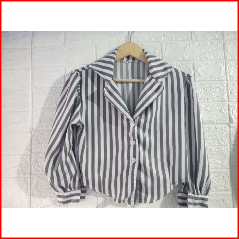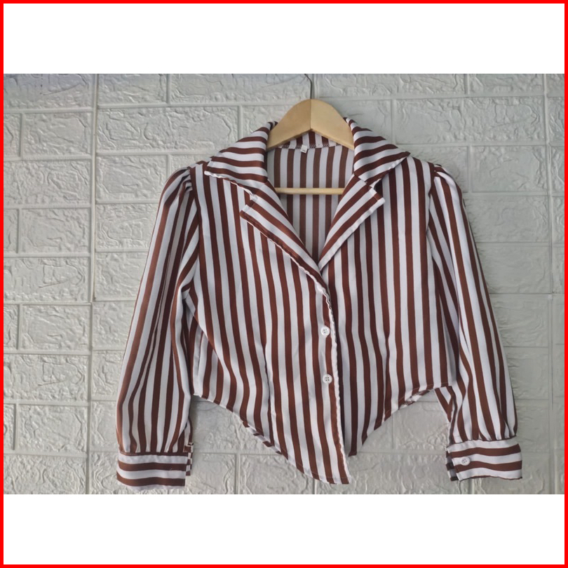 Kemeja Salur Tangan Puffy Bahan Shakilla Katun