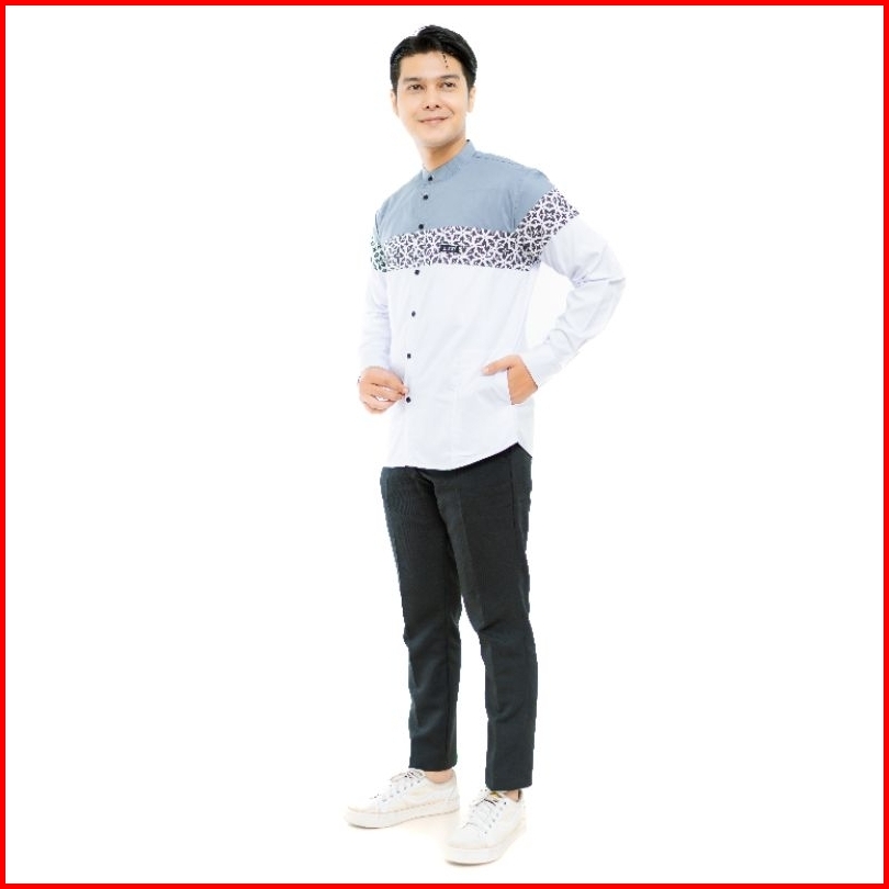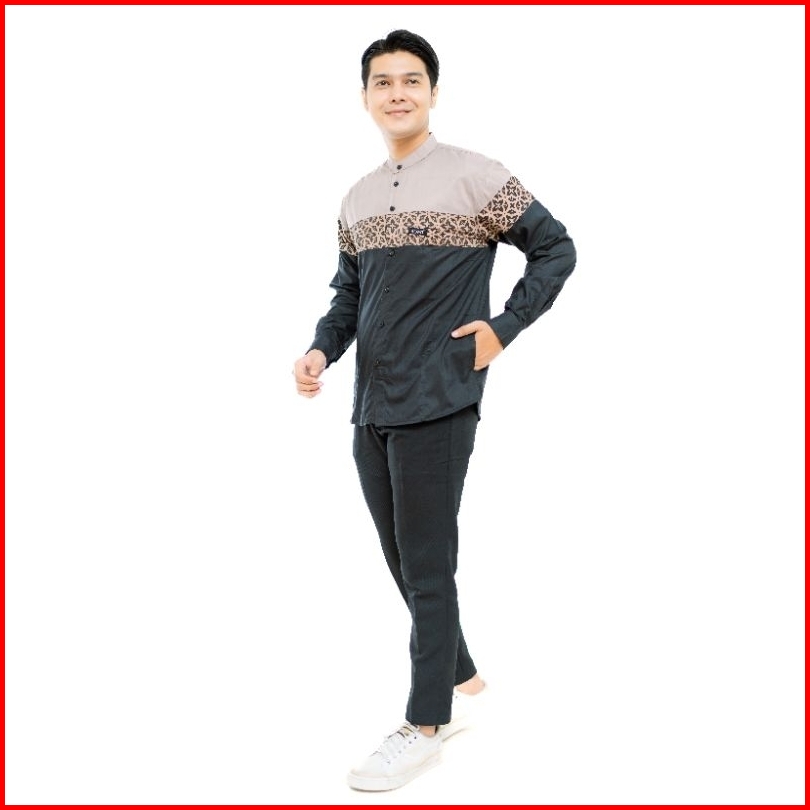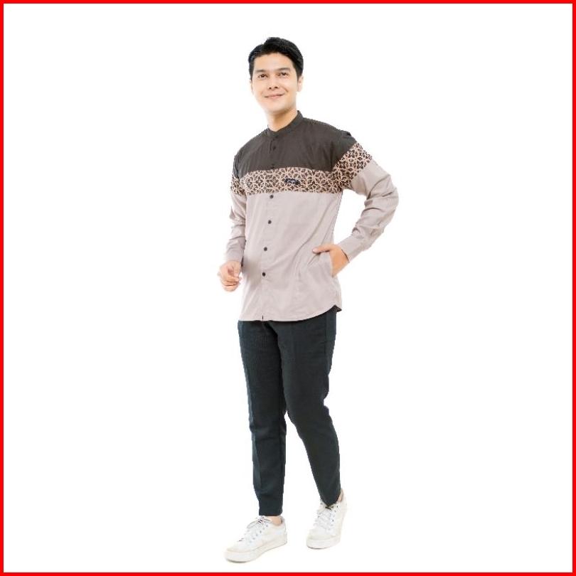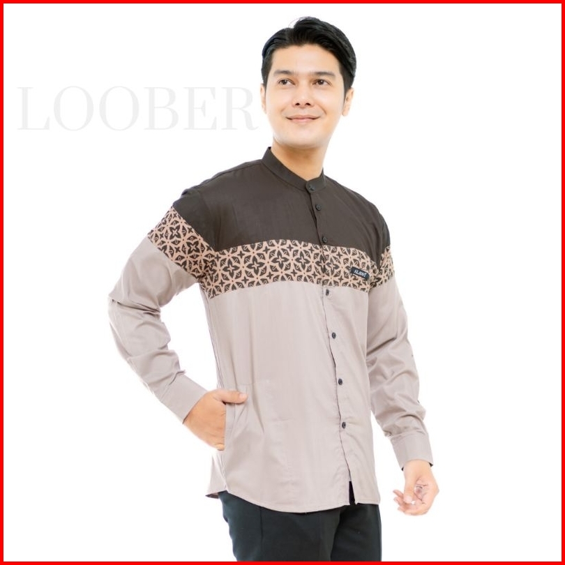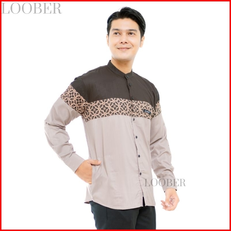 Loober - Baju Koko Pria Lengan Panjang Motif Qinang Yudhistira Warna Coksu Cream M-l-xl