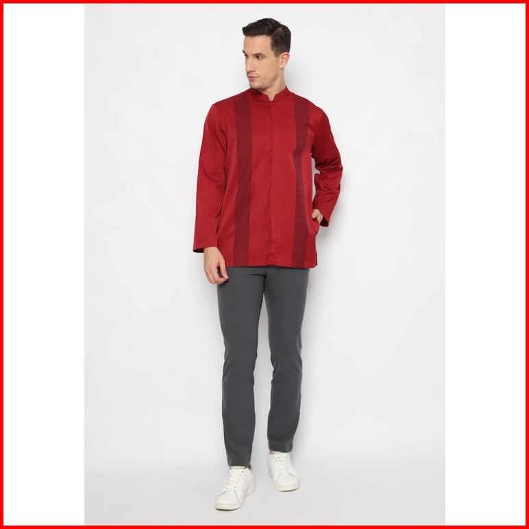 Jobb Aljazair Koko Pria Lengan Panjang Regular Fit Maroon