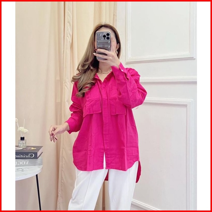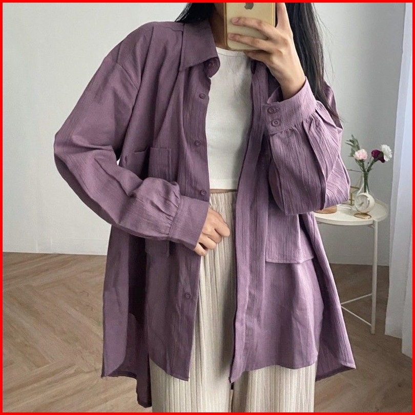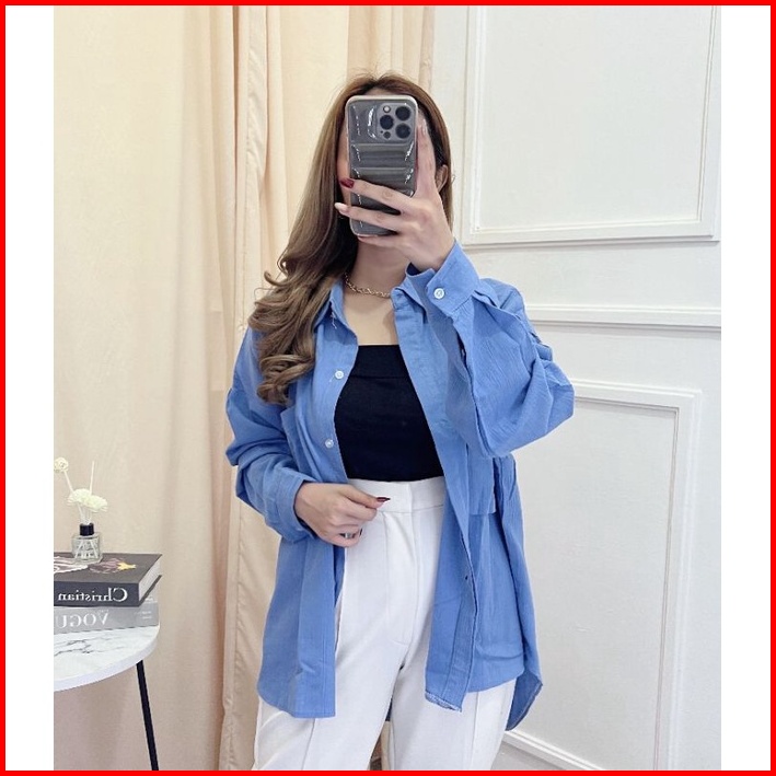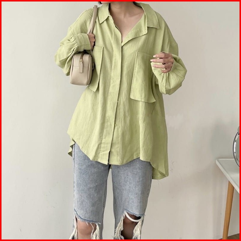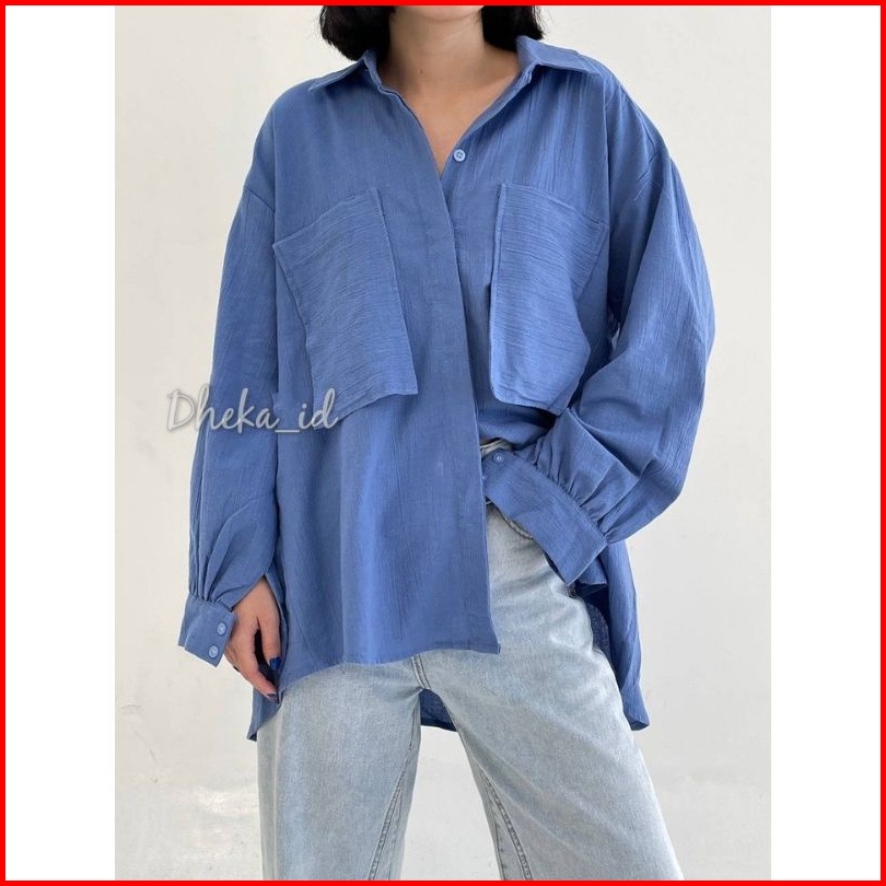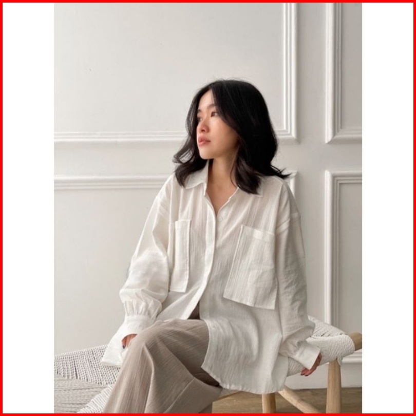 Niki Shirt 2001 - Kemeja 2 Pocket Oversize - Kemeja Linen Crinkle Oversize Atasan Wanita Gea Top