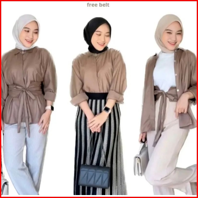 Meyla Blouse - Kemeja Katun Free Obi Belt
