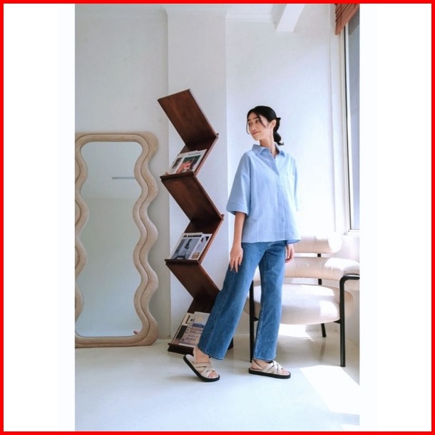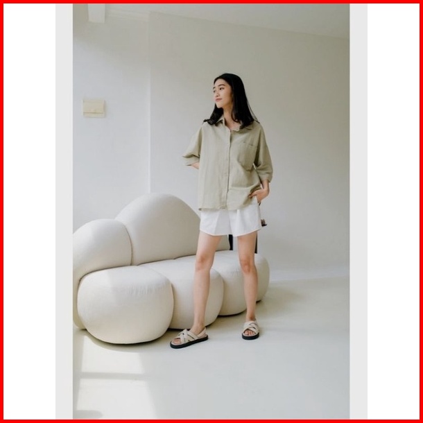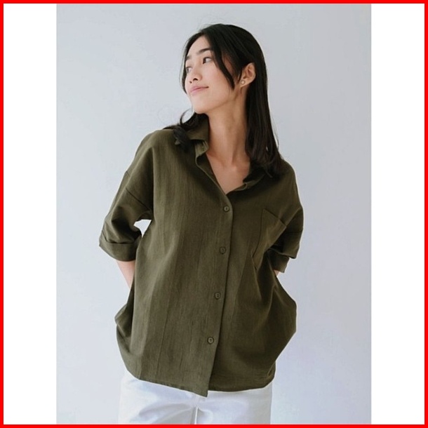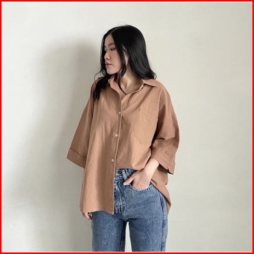 Mjon Linen Shirt Kemeja Oversize Singel Pocket Wanita