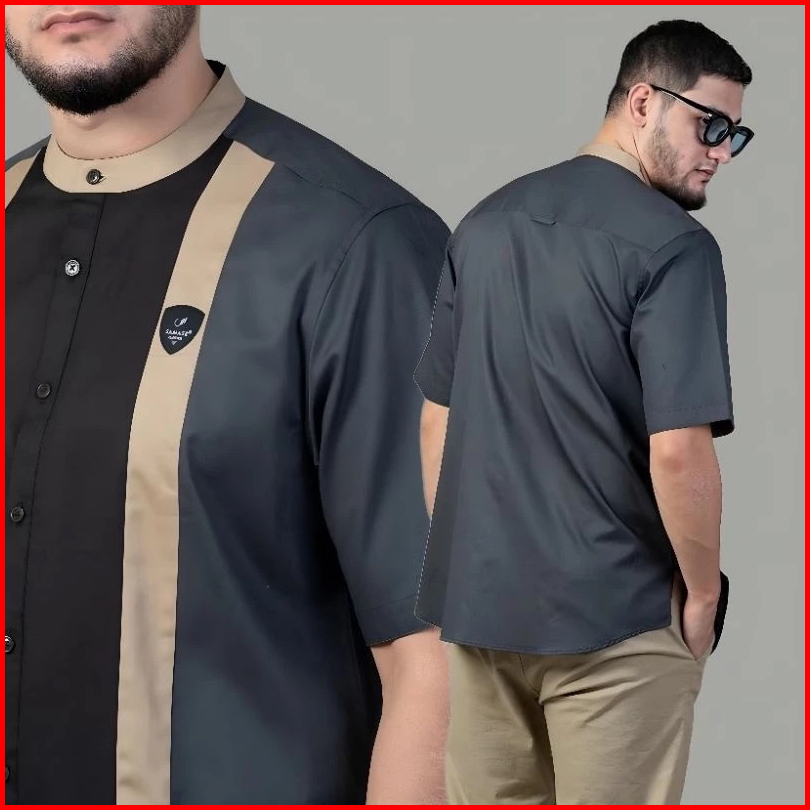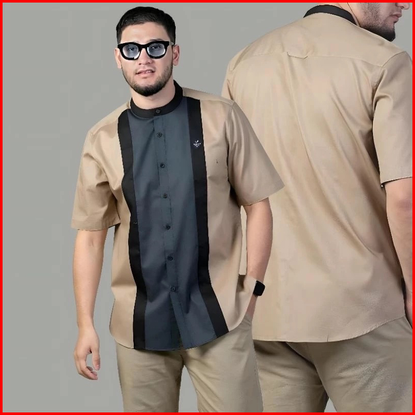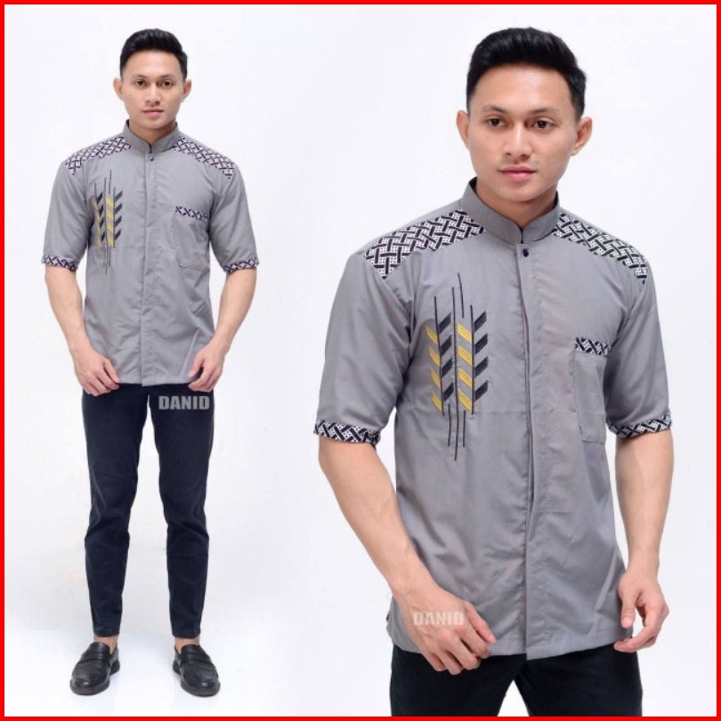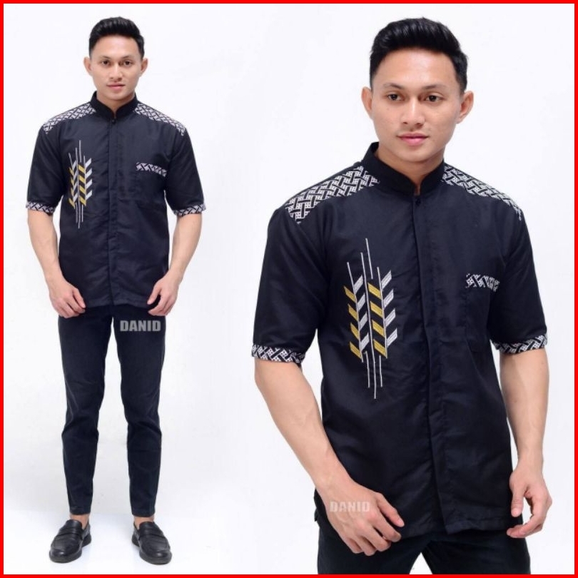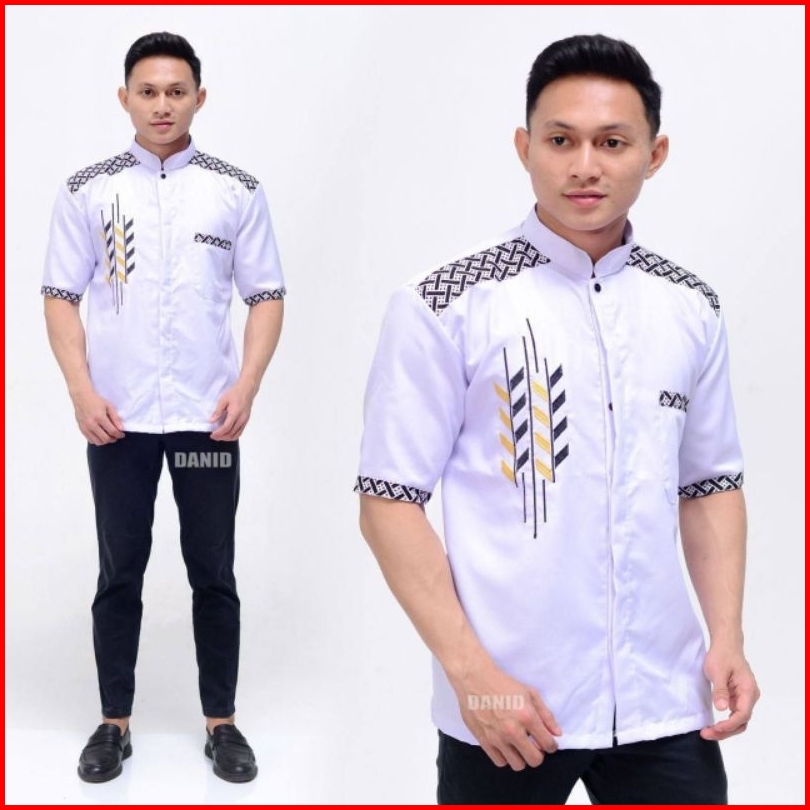 Zayyan Collection - Zc3 Baju Koko Dewasa - Baju Koko Bordir Lengan Pendek - Baju Koko Model Bordir Pari - Baju Koko Padi