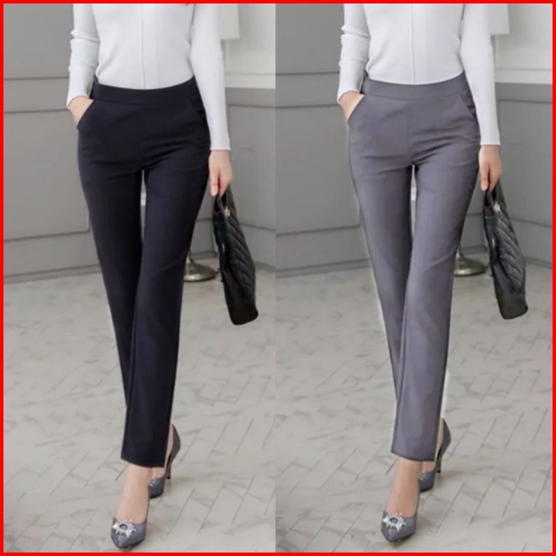 Celana Wanita Celana Kerja Kantoran Celana Formal Celana Bahan Terbaru Kekinian Model Pinggang Karet Reguler