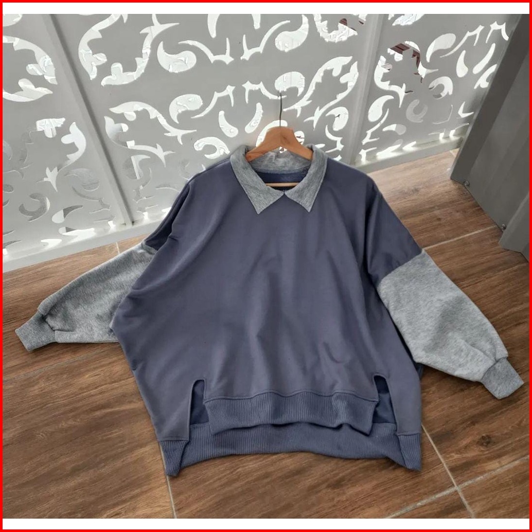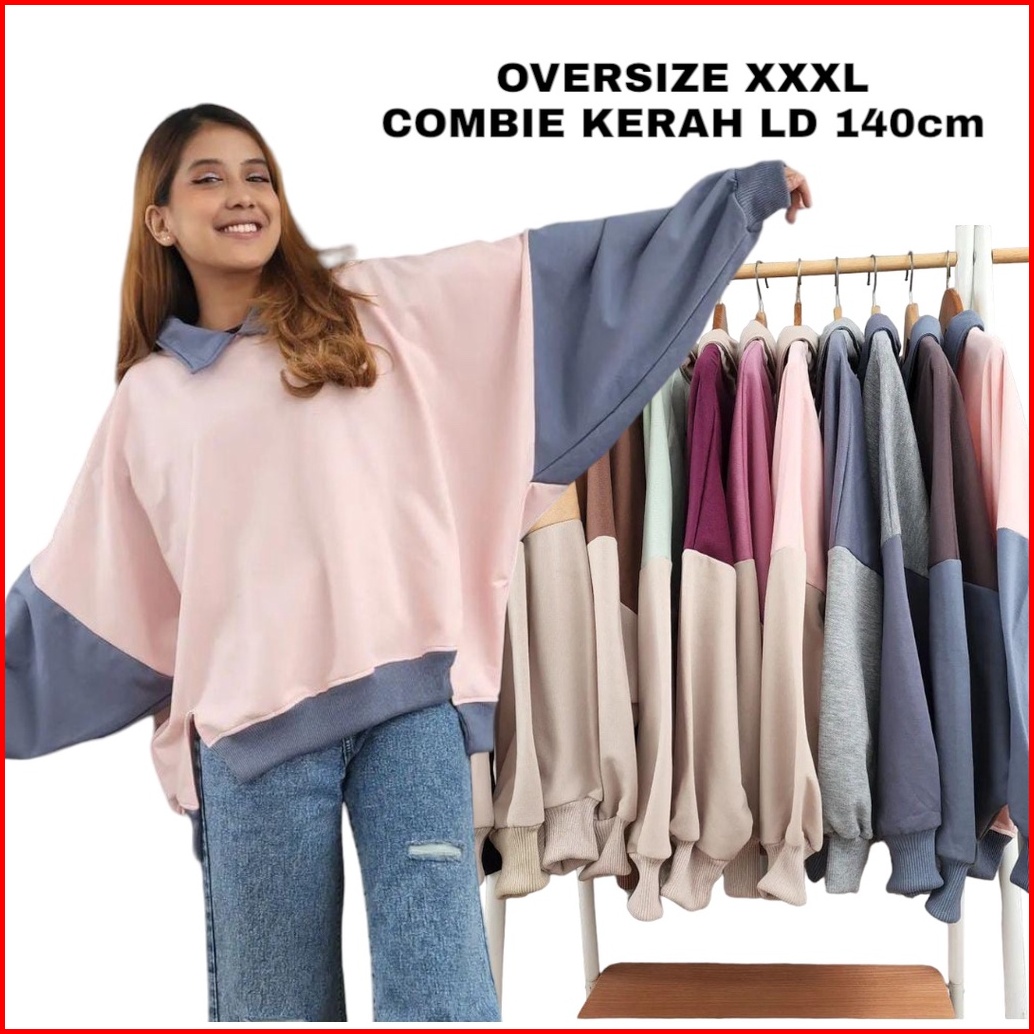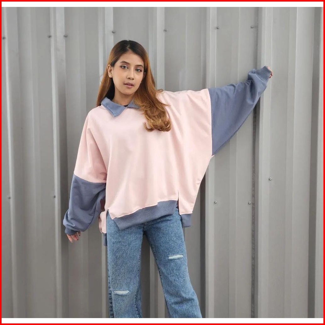 Ntr Oversize Xxxl Colar Batwing Combie Sweater Kerah Wanita Kombinasi Ntr