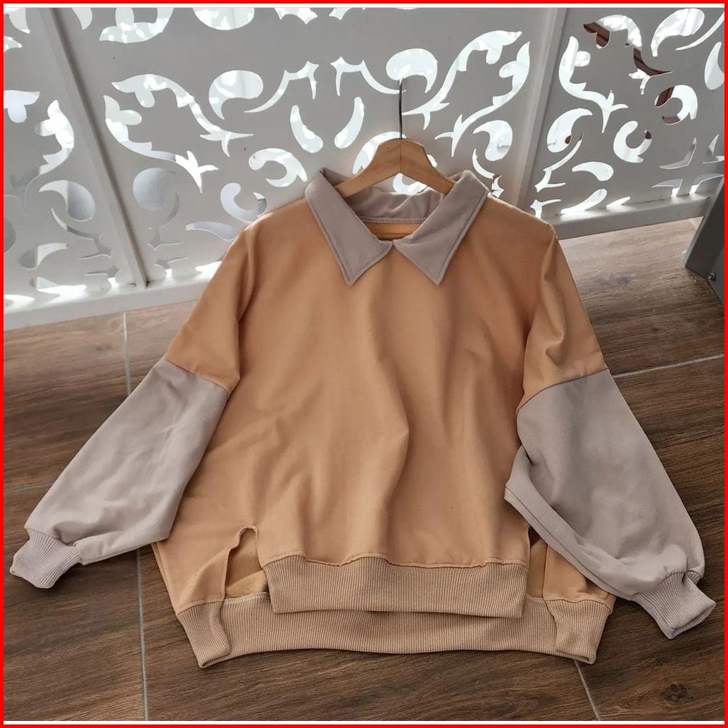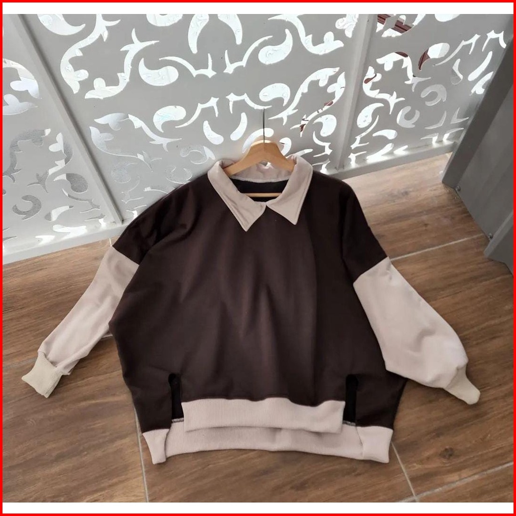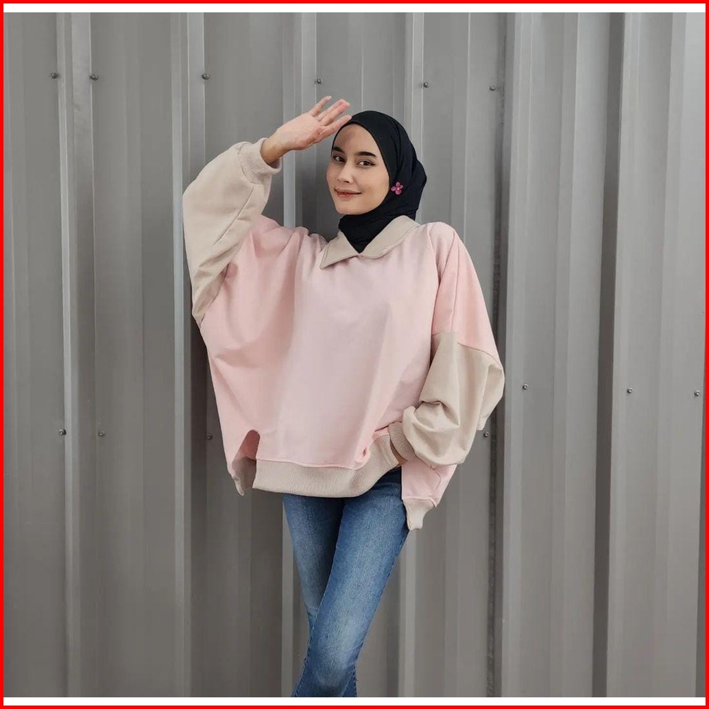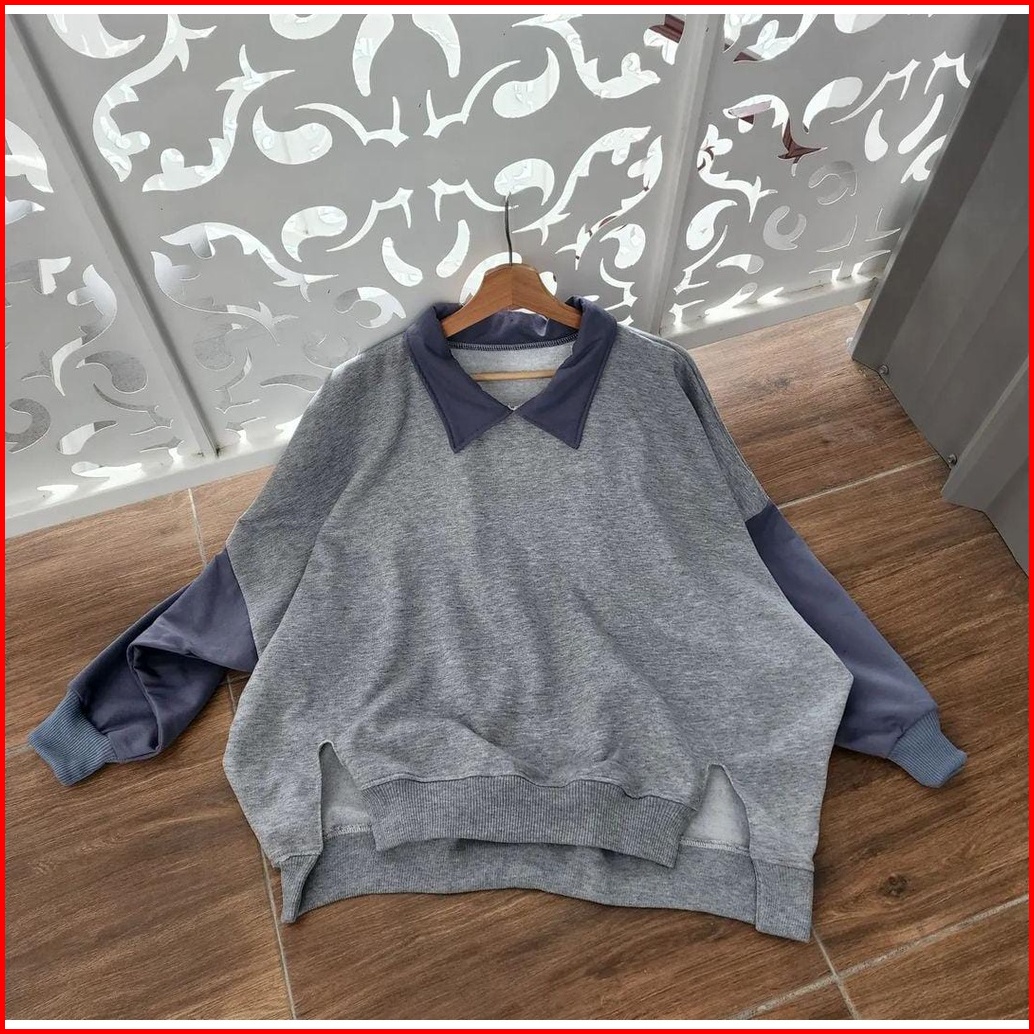 Ntr Oversize Xxxl Colar Batwing Combie Sweater Kerah Wanita Kombinasi Ntr