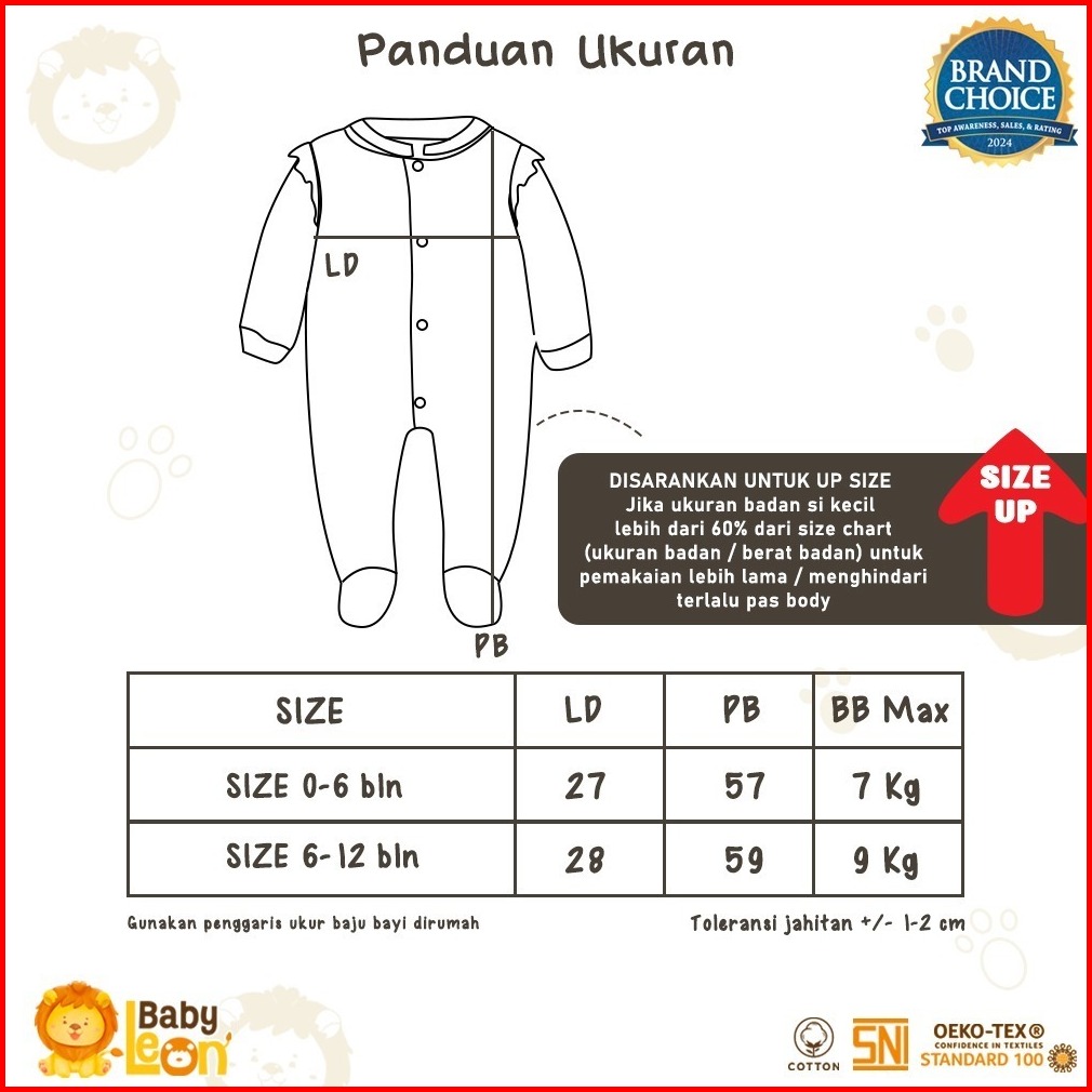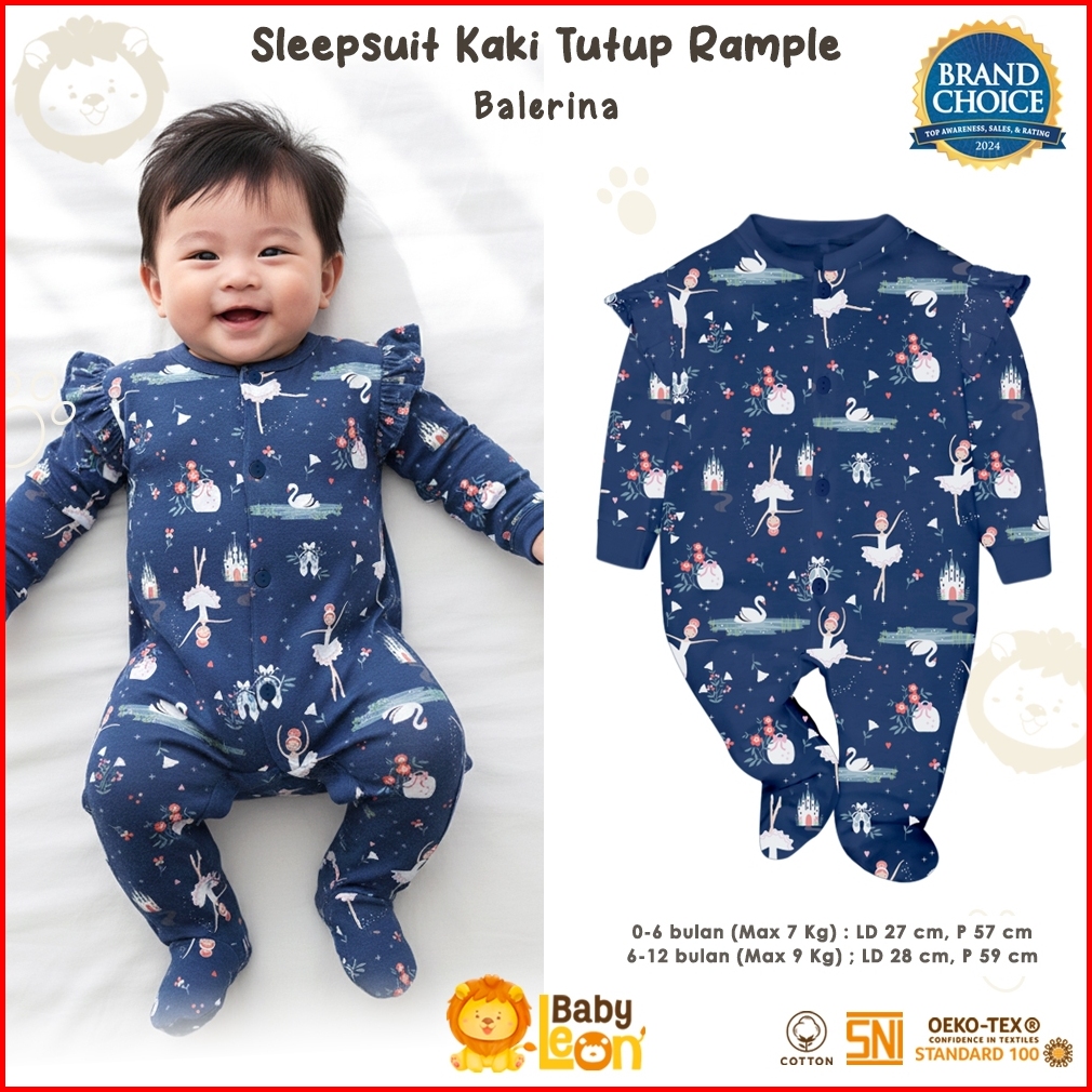 Sleepsuit Bayi Baby Leon Baju Bayi Sleepsuit Jumpsuit Bayi Lengan Panjang Jumper Bayi Perempuan Newborn Piyama Bayi Bc-0