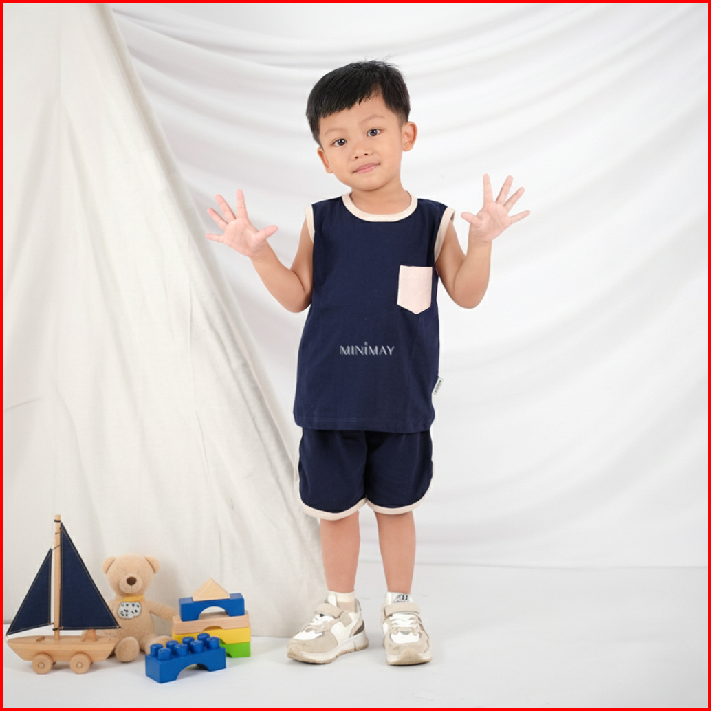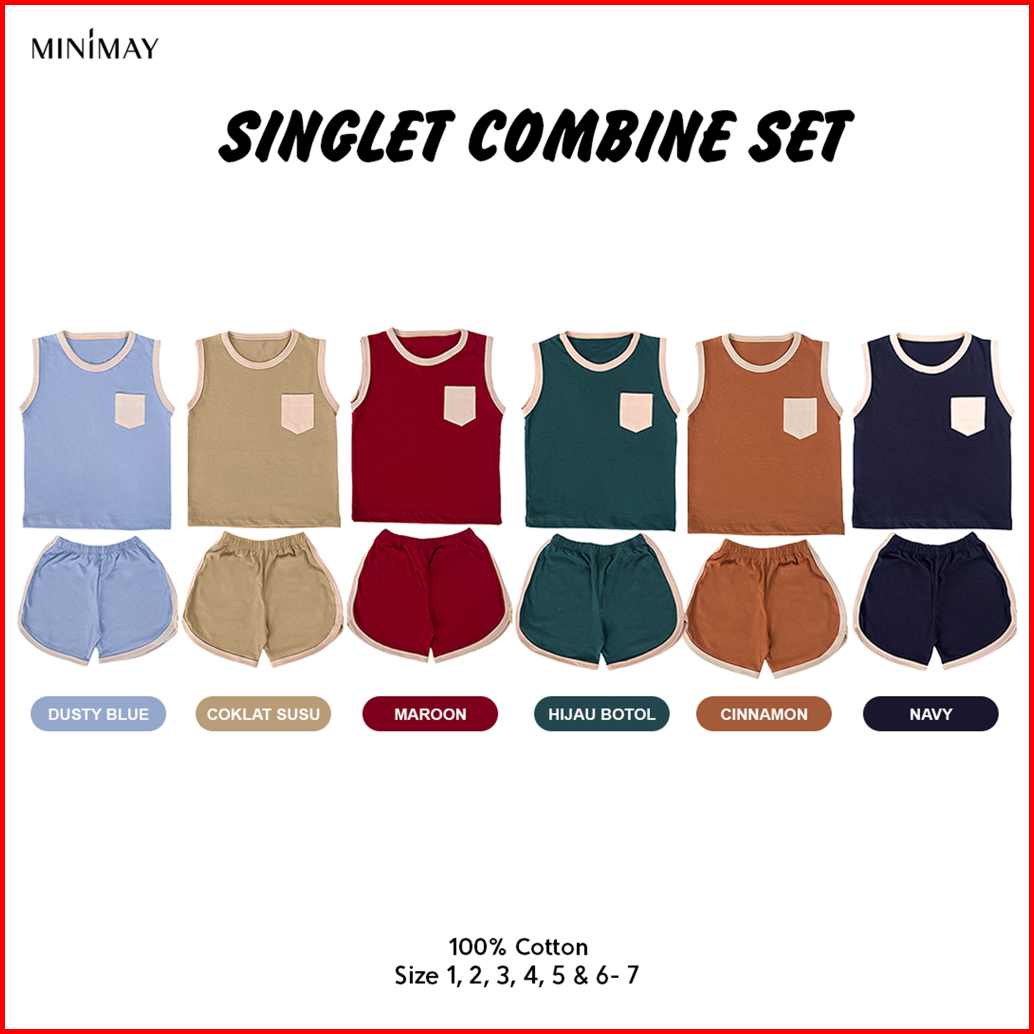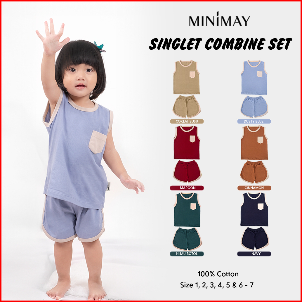Minimay Setelan Piyama Kaos Anak Singlet Set Kutung Sleeveless Combine Two Color Maysara