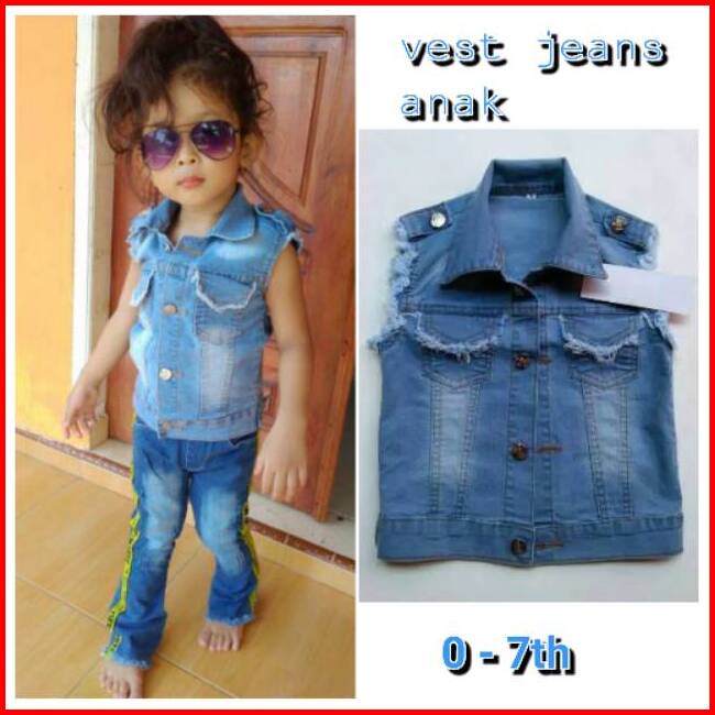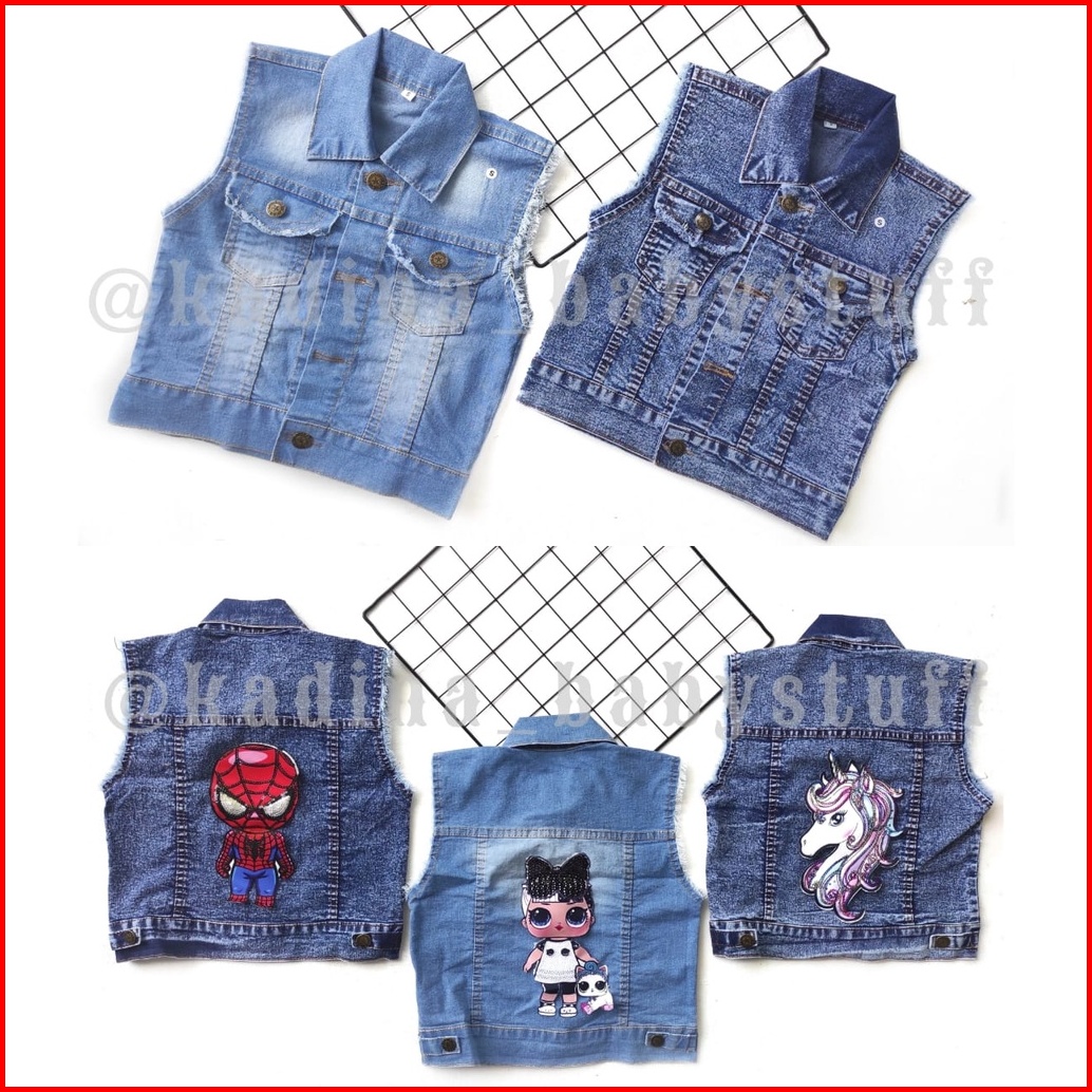 Rompi Jeans Anak Vest Jeans Anak Snow Wash Led Micky Mouse Unicorn Jaket Anak Perempuan
