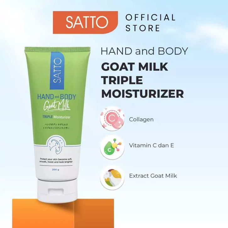 Handbody Satto Body Lotion Goat Milk 200g Susu Kambing Toneup Whitening Dan Triple Moisturizer Melembabkan