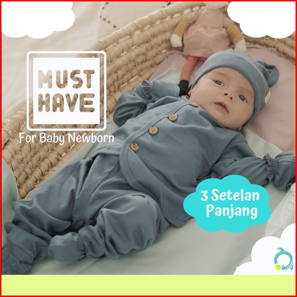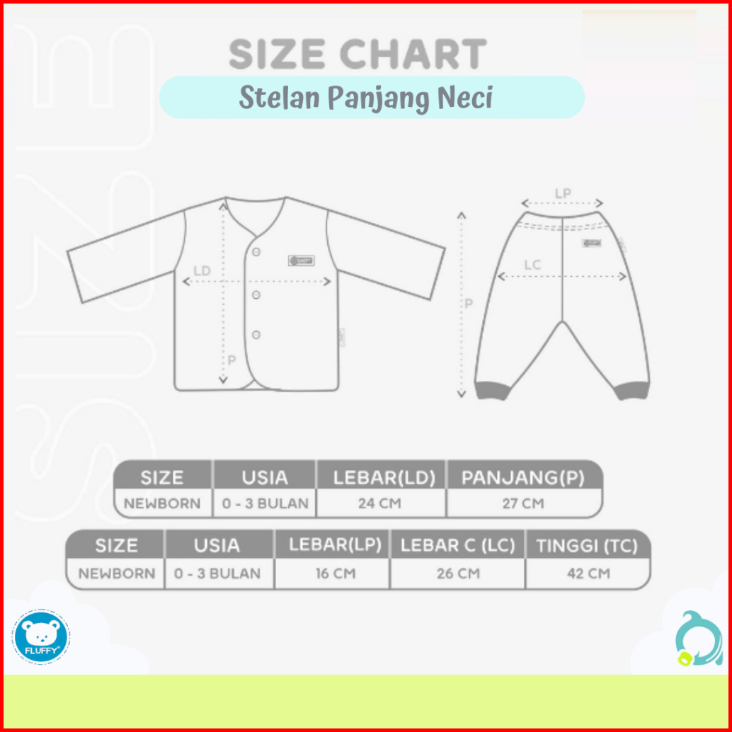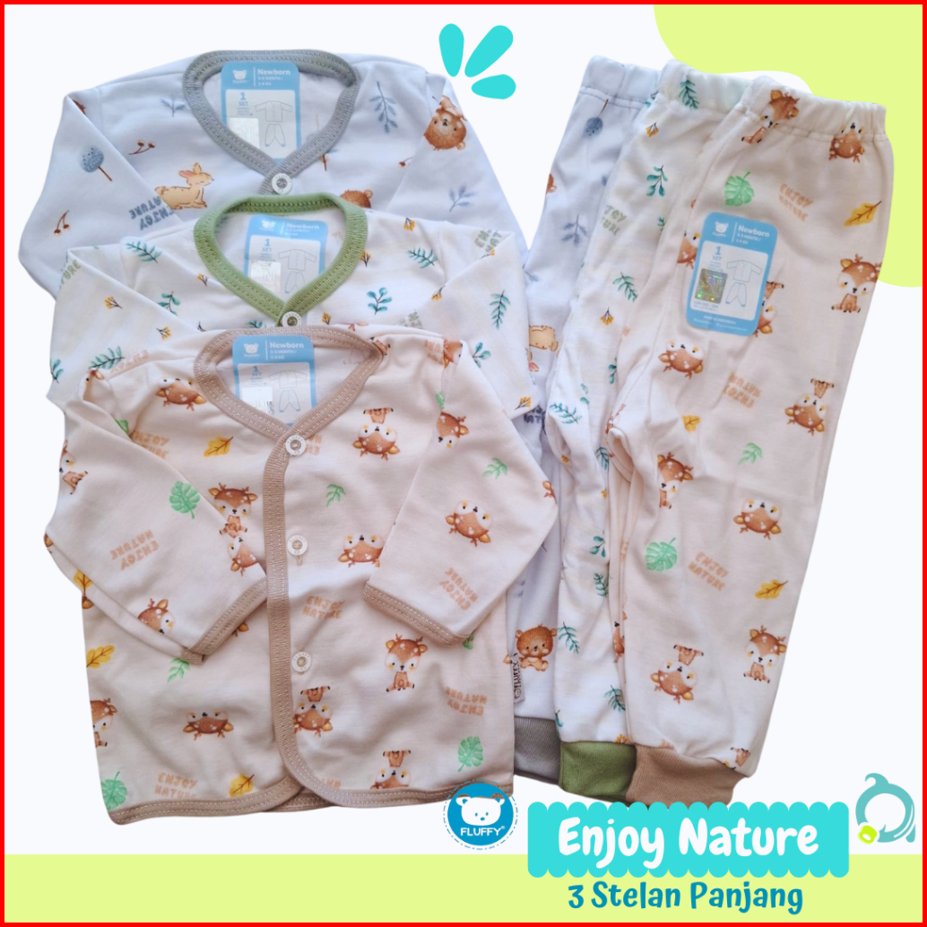 Fluffy 3 Stelan Panjang Bis Motif Mix Abu Khaki Pink Biru Size 0-3 Bulan Newborn