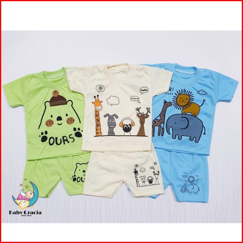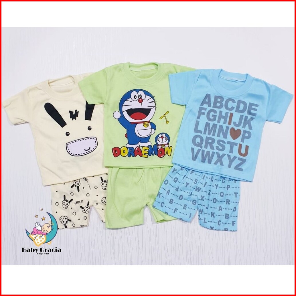Paket Hemat 3 Pasang Setelan Anak Motif Bagus Sablon