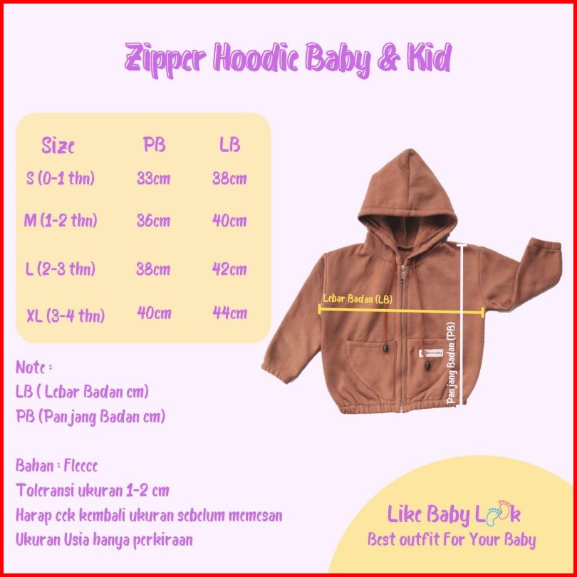 Zipper Hoodie Baby Kid Jaket Hoodie Bayi Anak 0 - 4 Tahun