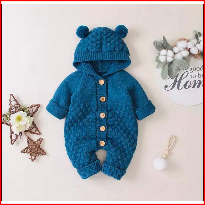 Jumpsuit Bayi Rajut Halus Popcorn Anak Bayi 0-12 Bulan Jumper Gemas Popcorn Rajut Tebal Bayi