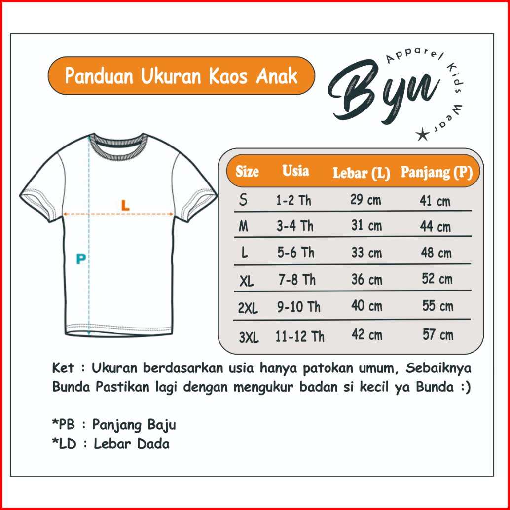 Bayyan Kaos Anak Perempuan Umur 1-12 Tahun Cotton Soft 30s