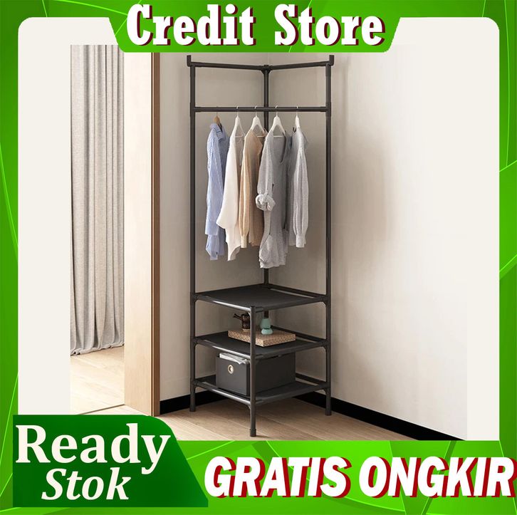 J809 Rak Gantungan Baju Rak penyimpanan tingkat hitam dapur ruang tamu kamar mandi sepatu gudang serbaguna multifungsi