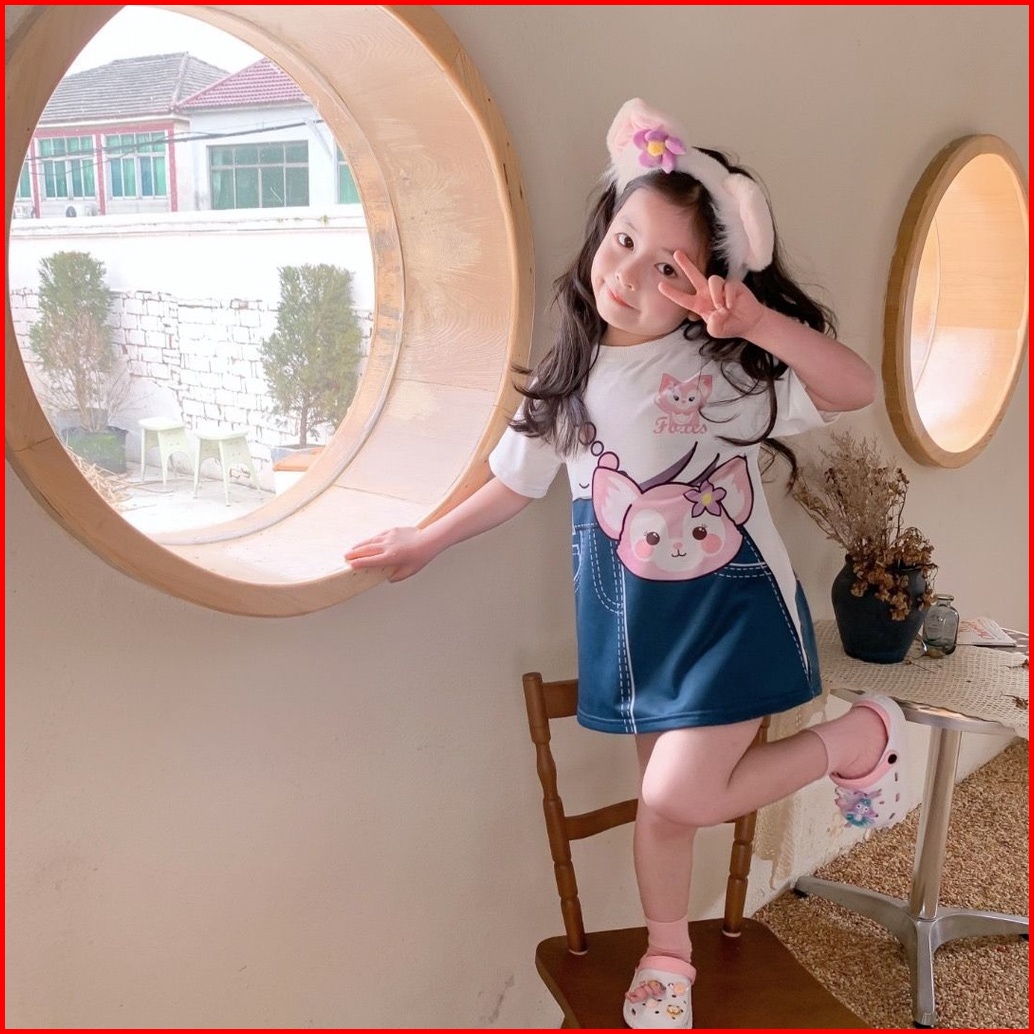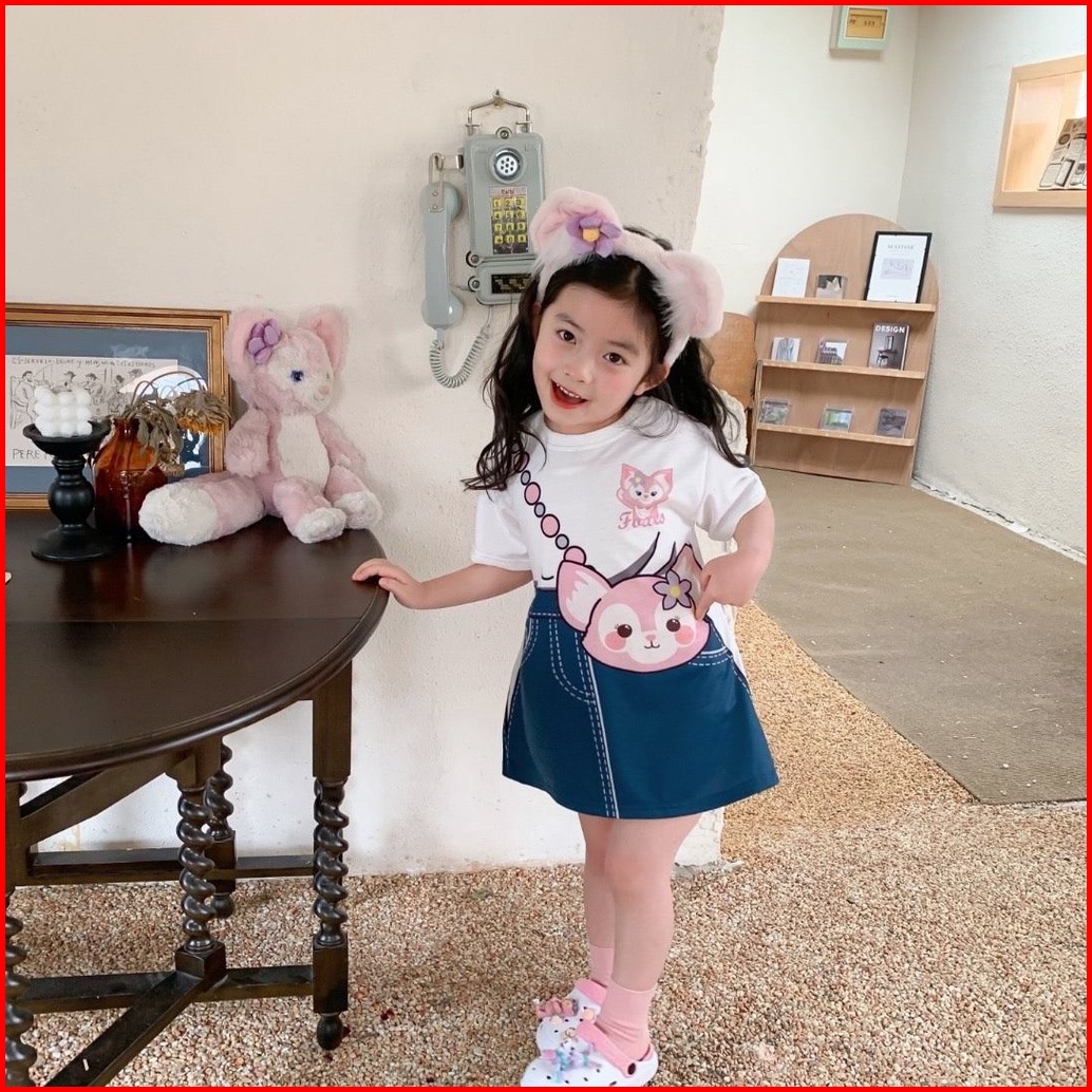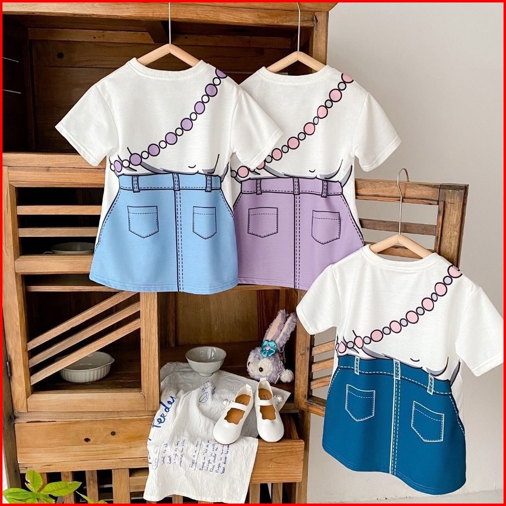 Princess Kesli 1-9 Tahun Dress Linabell Anak Perempuan Versi Korea Motif Kartun Rok Denim Kasual