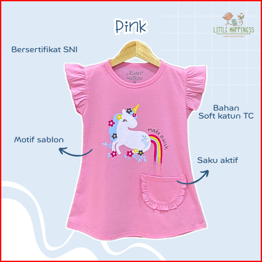 Dress Motif Anak Usia 2 - 6 Tahun Ruffle Pocket Dress Daster Anak Perempuan Kelfi