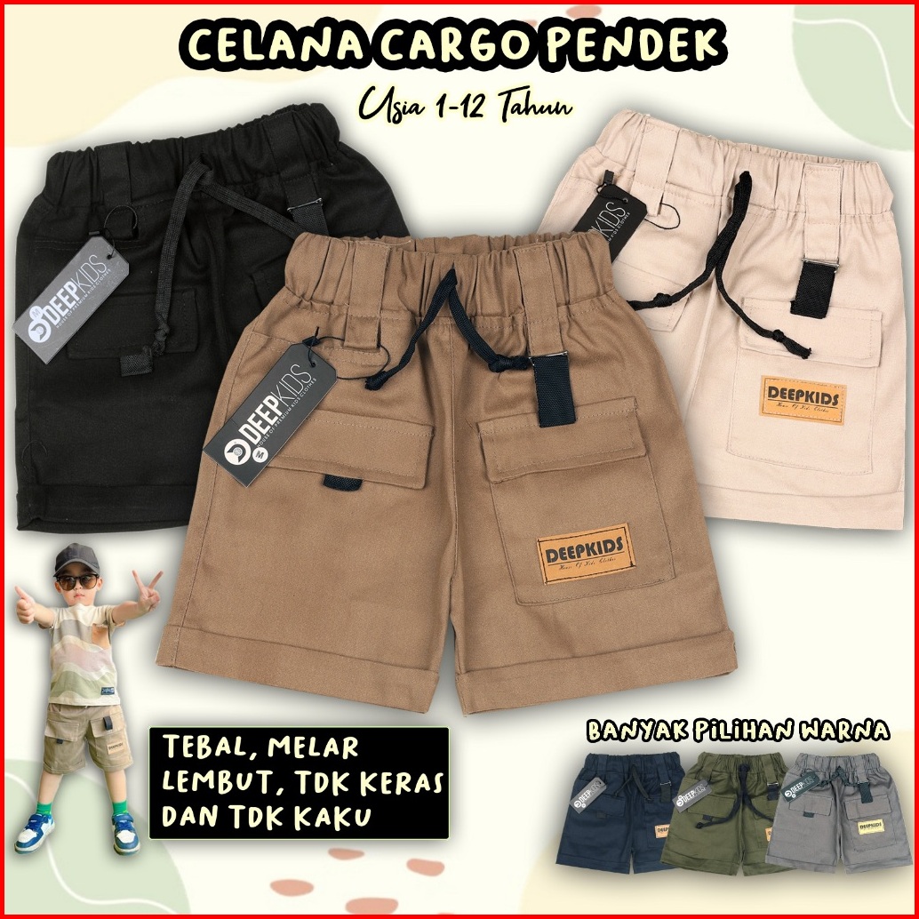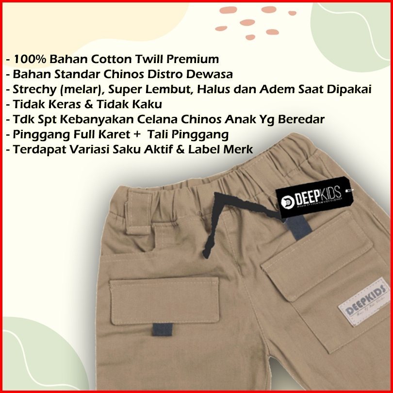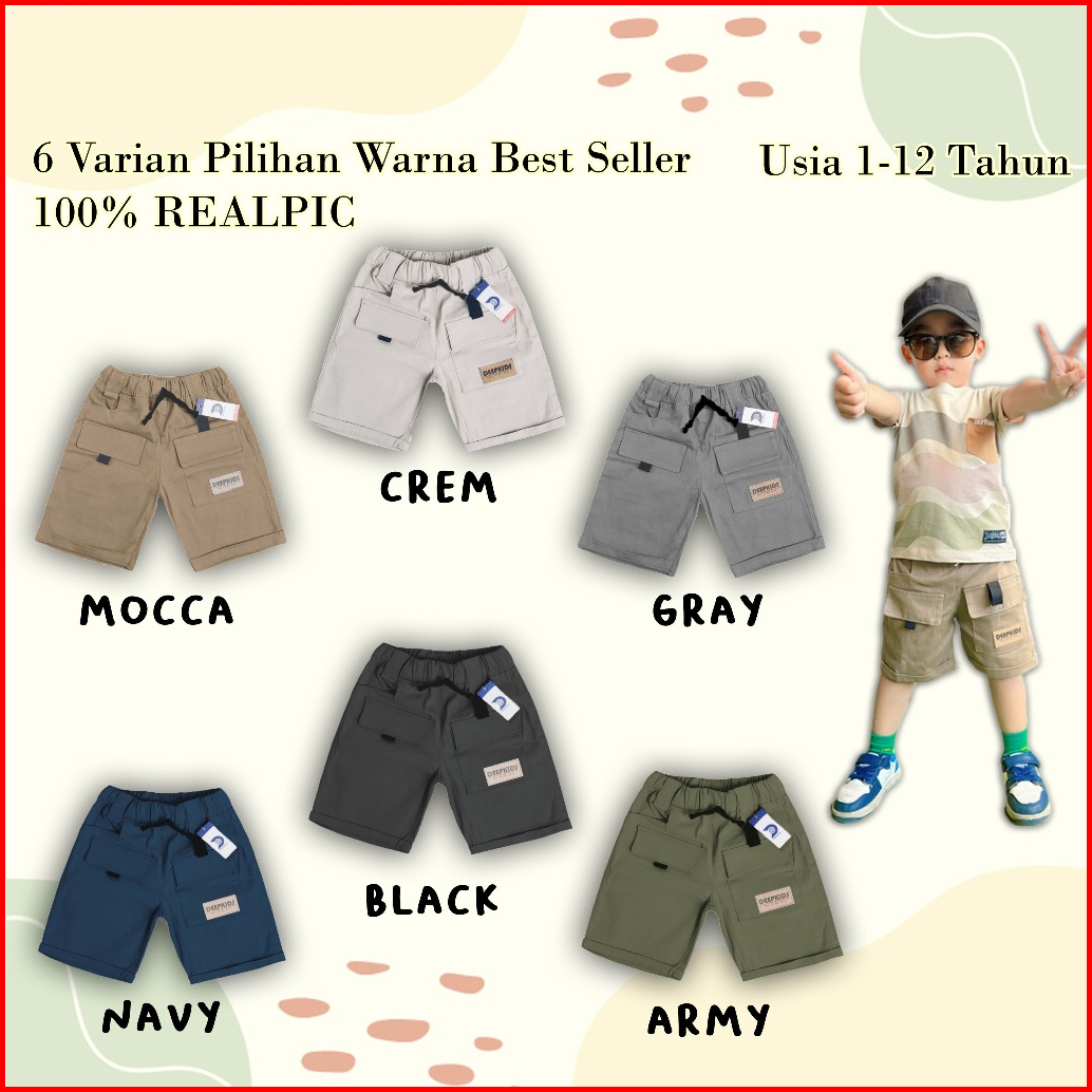 Celana Pendek Cargo Anak Laki Laki Bahan Katun Twill Chinos Combed Premium Usia 1-12 Tahun