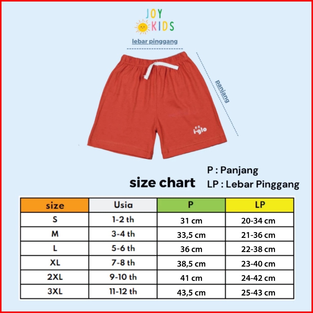Joy Kids Celana Pendek Anak Cewe Cowo Sablon 1-12 Tahun