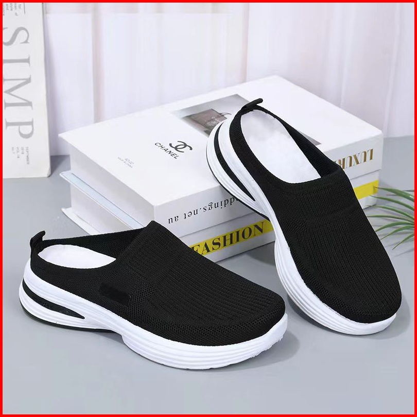 Disc 10rb Sandal Wedges Wanita Flyknit Slip On Shoes S-024