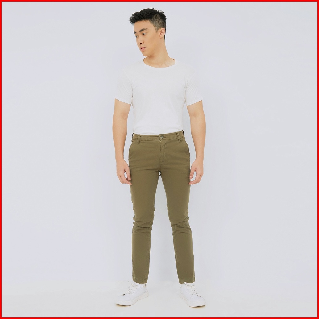 M231 Celana Panjang Pria Chino Pants Slim Fit Stretch Olive C1142