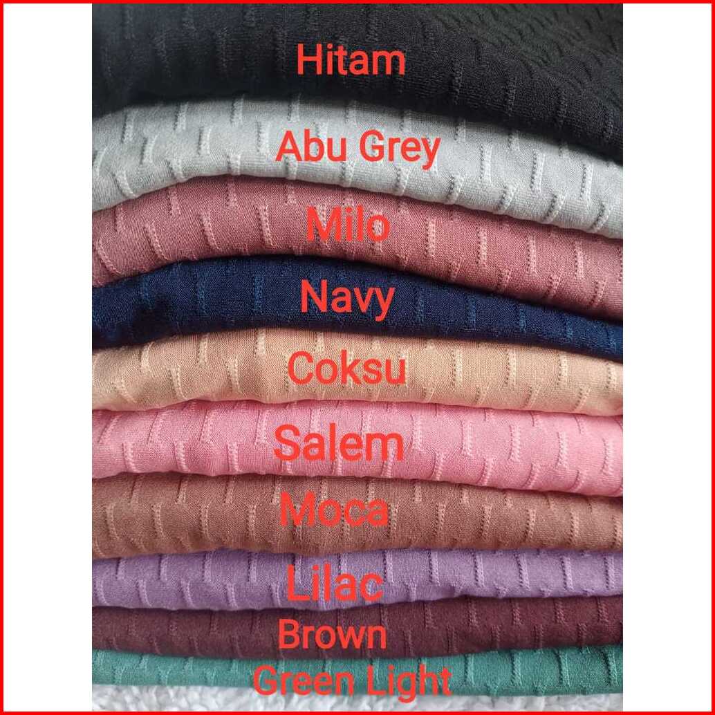Hitam, MOCCA, GREY, MILLO, GREEN LIGHT, COKSU, NAVY, TARO, HIJAU PUPUS, PEACH, MAROON, SOFT DENIM, Olive