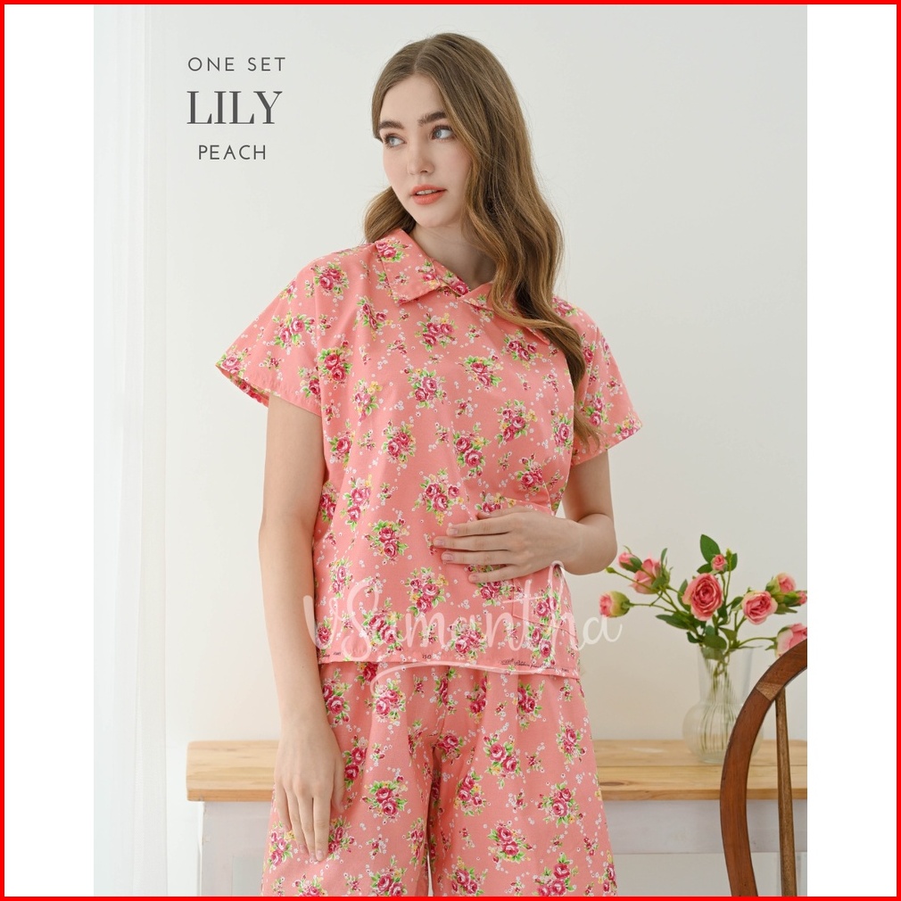 Vsamantha - One Set Piyama Pajamas Crop Lily Peach